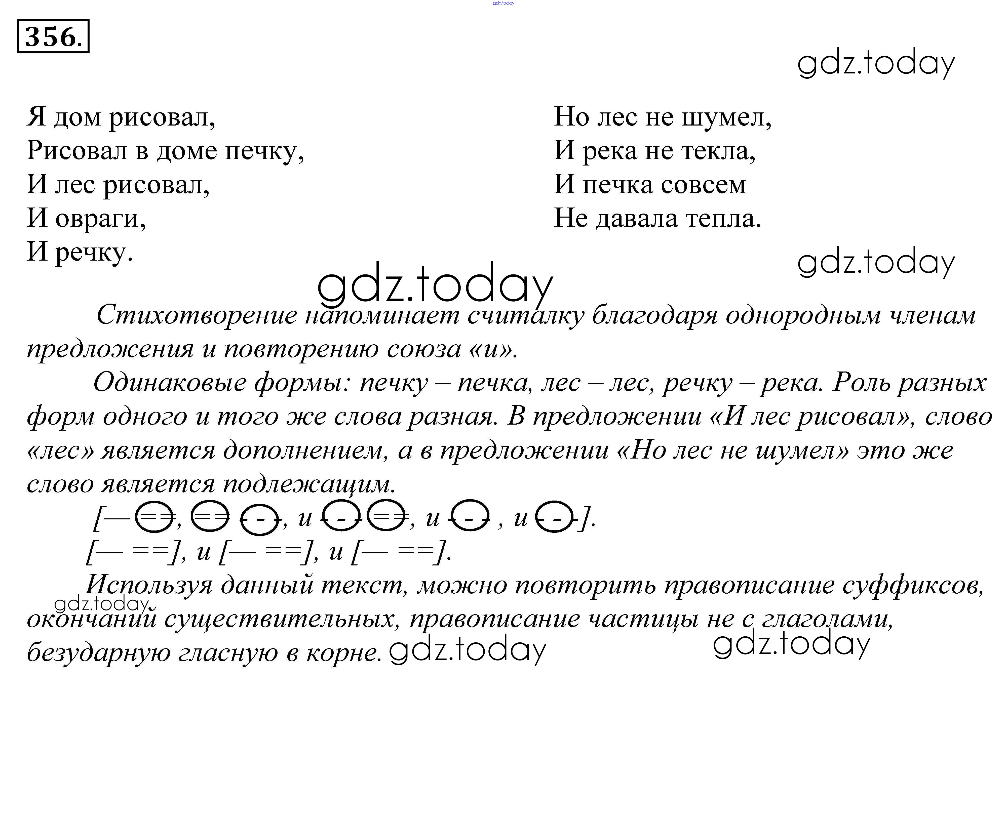 На страницах сайта gdz.today вы найдете учебный и вспомогательный материал, направленный на улучшения знаний школьной программы. ГДЗ - онлайн мир знаний Решение к упражнениям 356 Учебнику по Русскому языку для 5 класса Купалова, Еремеева Дрофа 2015