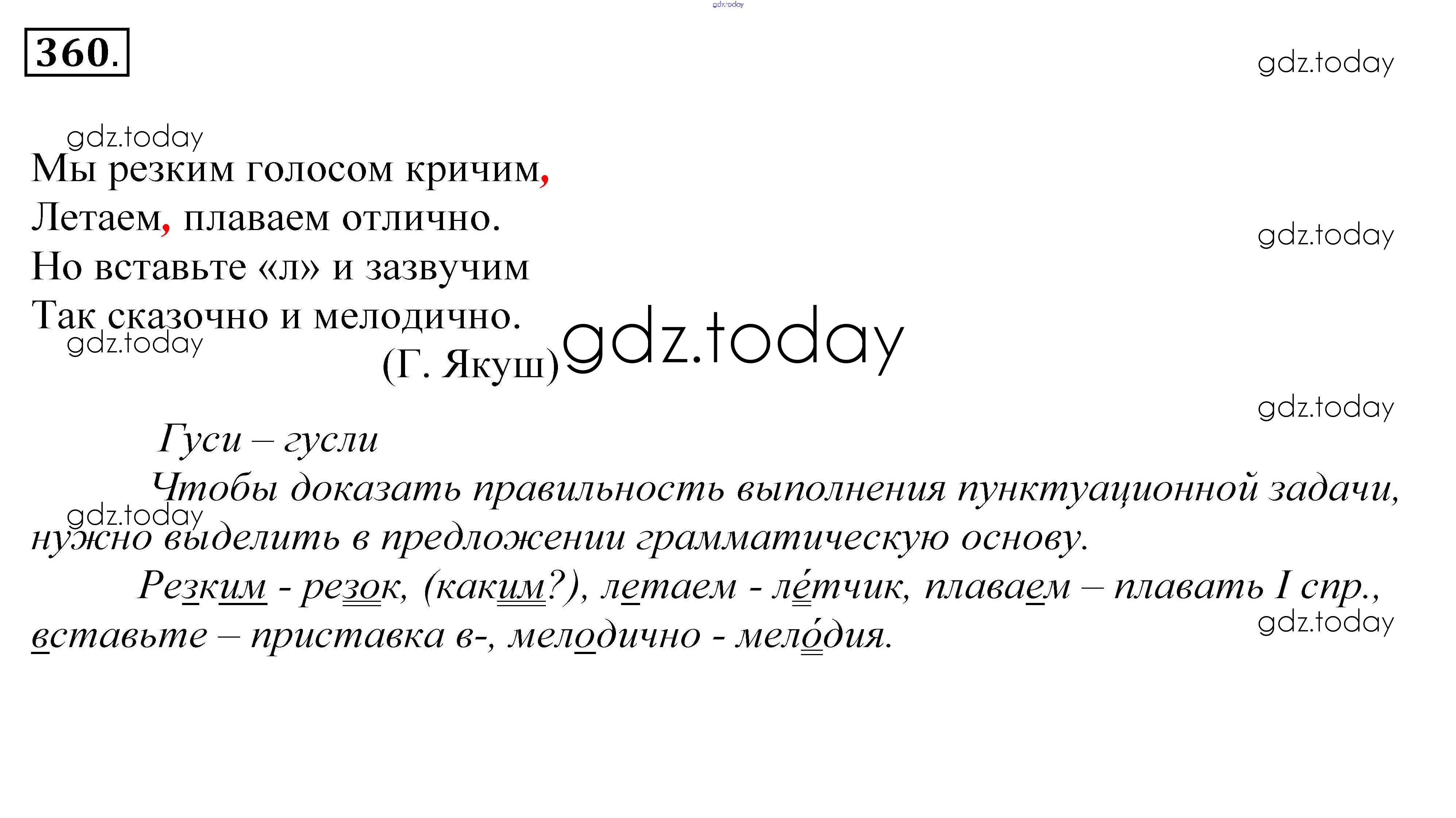 На страницах сайта gdz.today вы найдете учебный и вспомогательный материал, направленный на улучшения знаний школьной программы. ГДЗ - онлайн мир знаний Решение к упражнениям 360 Учебнику по Русскому языку для 5 класса Купалова, Еремеева Дрофа 2015