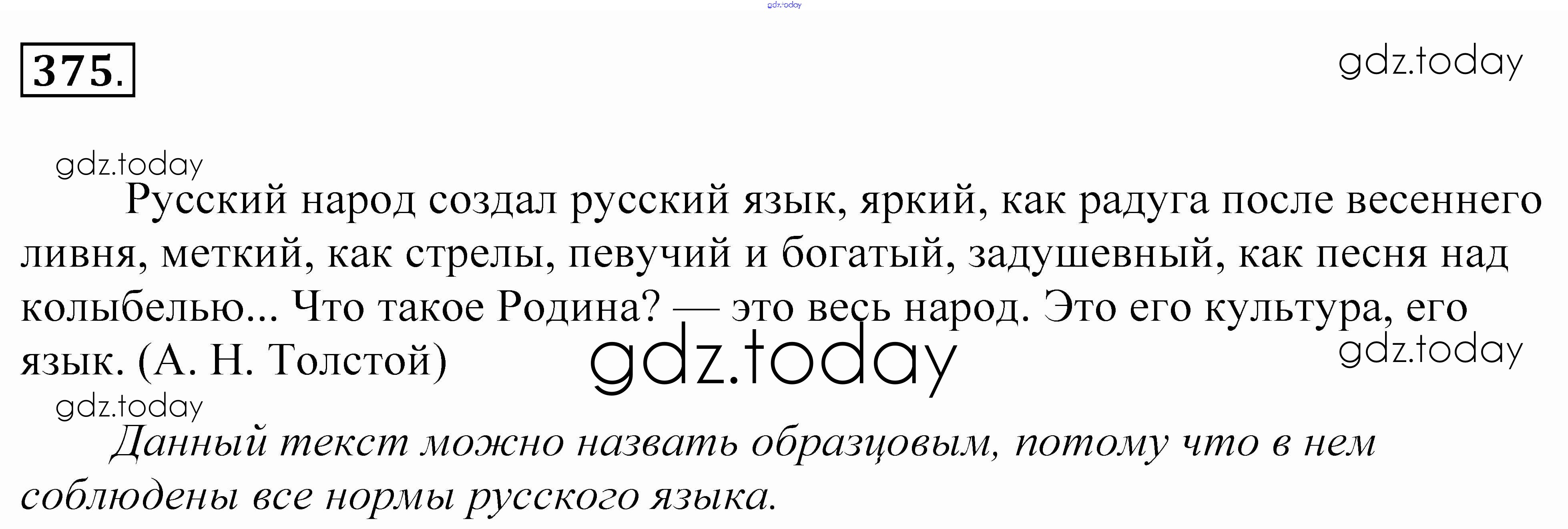 На страницах сайта gdz.today вы найдете учебный и вспомогательный материал, направленный на улучшения знаний школьной программы. ГДЗ - онлайн мир знаний Решение к упражнениям 375 Учебнику по Русскому языку для 5 класса Купалова, Еремеева Дрофа 2015
