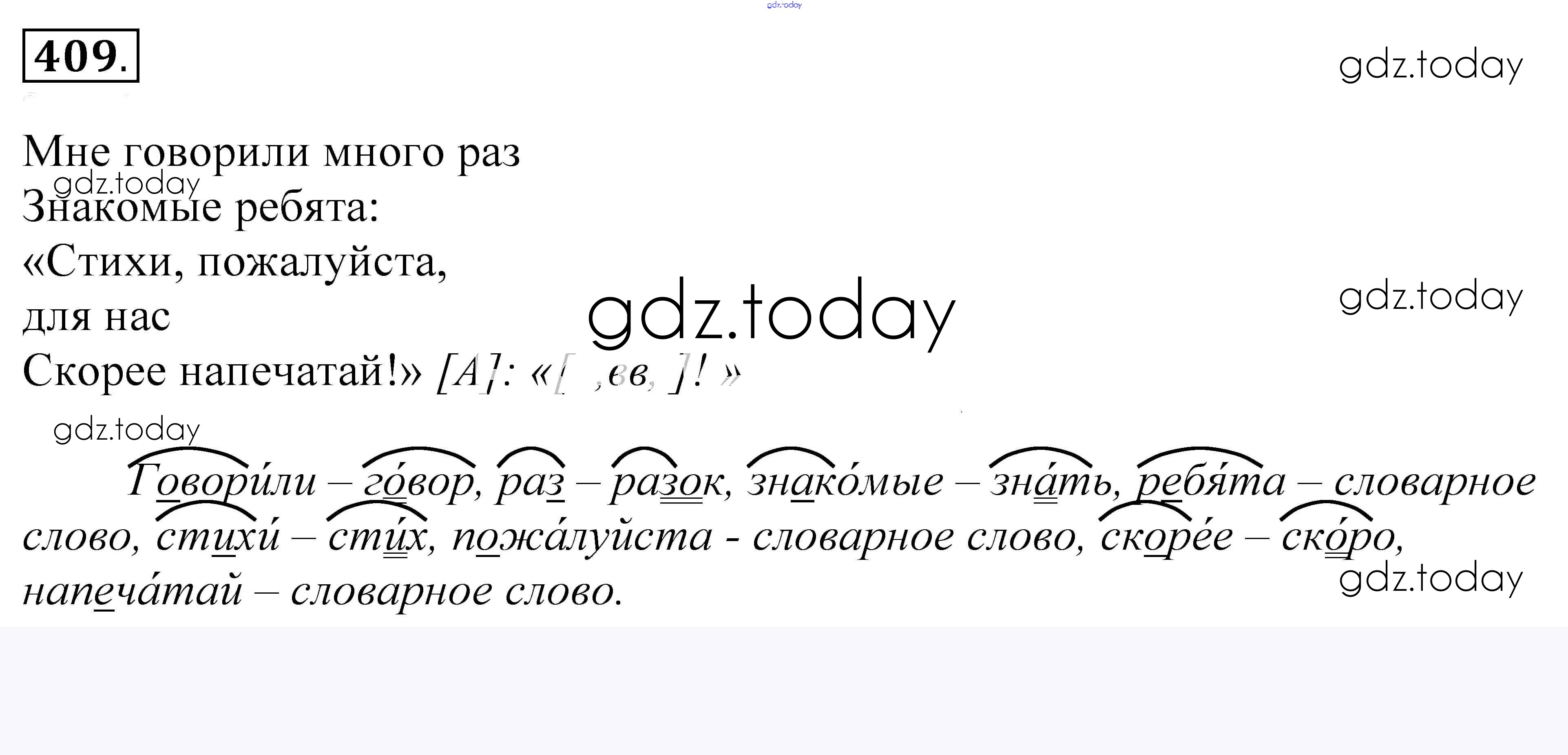 На страницах сайта gdz.today вы найдете учебный и вспомогательный материал, направленный на улучшения знаний школьной программы. ГДЗ - онлайн мир знаний Решение к упражнениям 409 Учебнику по Русскому языку для 5 класса Купалова, Еремеева Дрофа 2015