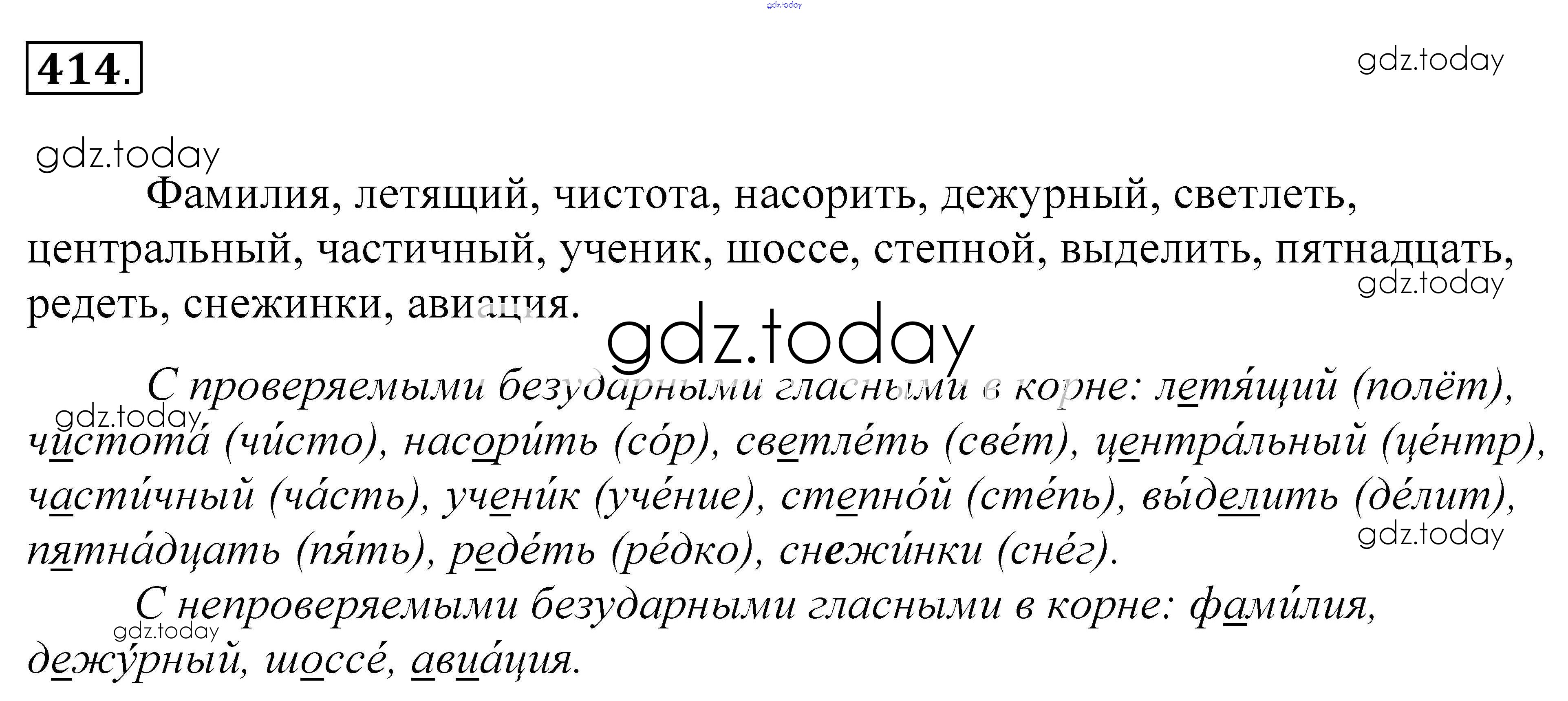 На страницах сайта gdz.today вы найдете учебный и вспомогательный материал, направленный на улучшения знаний школьной программы. ГДЗ - онлайн мир знаний Решение к упражнениям 414 Учебнику по Русскому языку для 5 класса Купалова, Еремеева Дрофа 2015