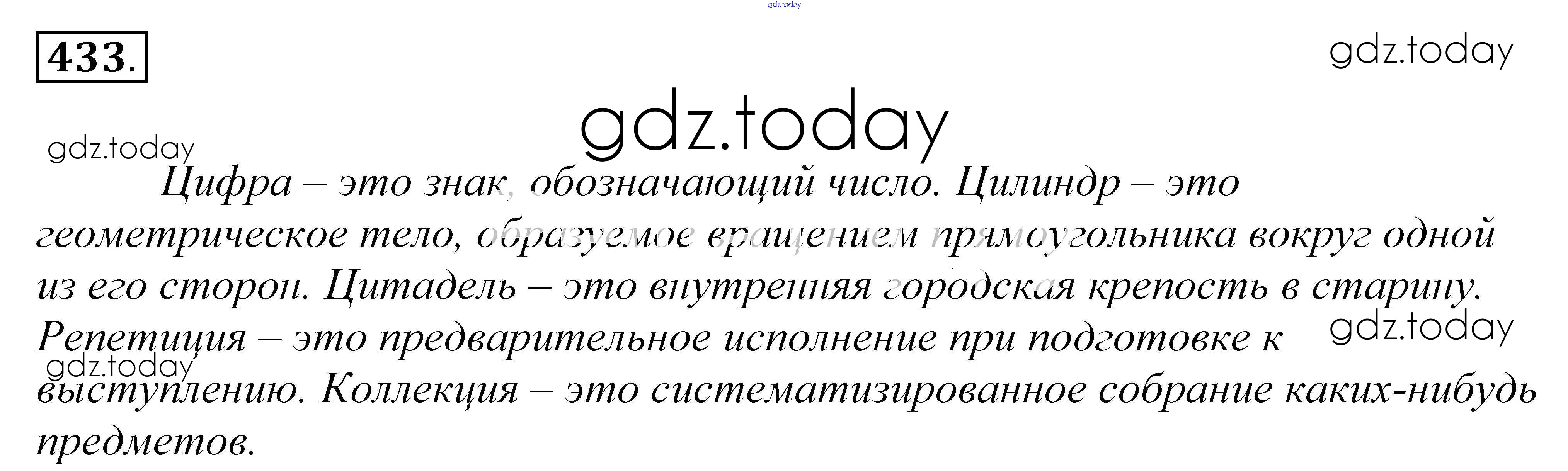 На страницах сайта gdz.today вы найдете учебный и вспомогательный материал, направленный на улучшения знаний школьной программы. ГДЗ - онлайн мир знаний Решение к упражнениям 433 Учебнику по Русскому языку для 5 класса Купалова, Еремеева Дрофа 2015