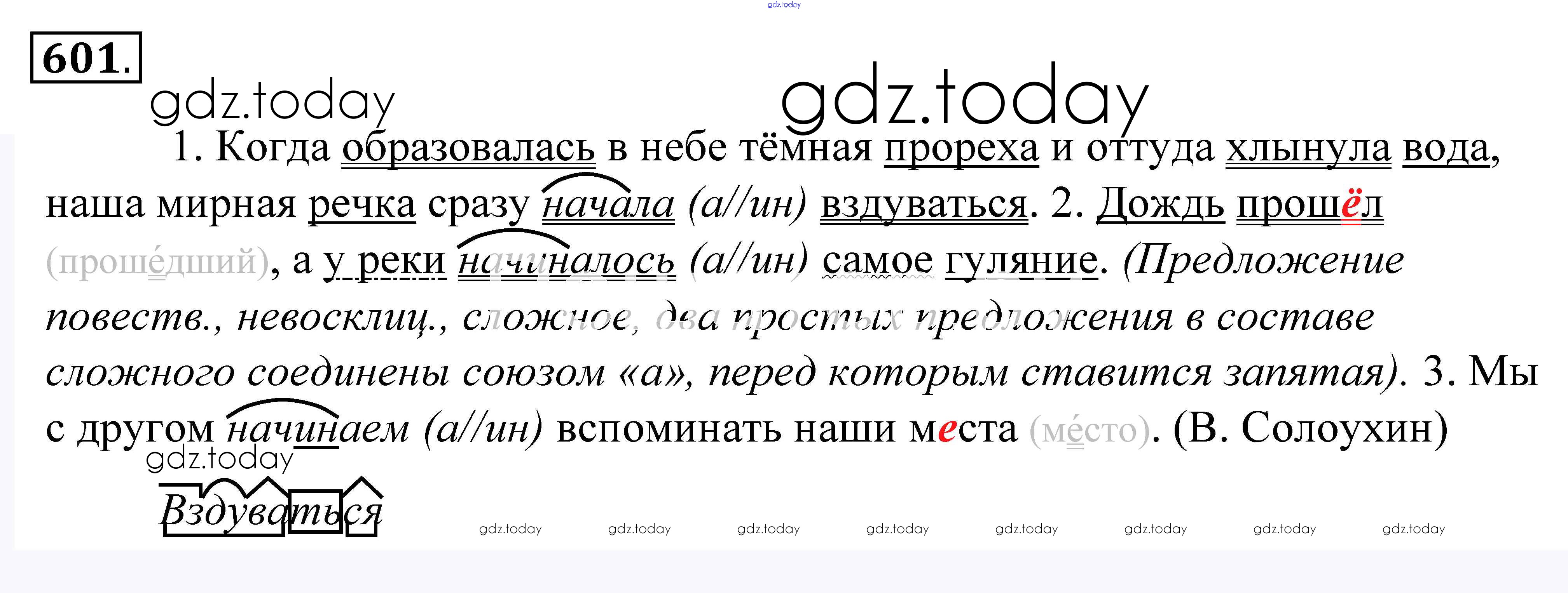 Ответы к Решение к упражнениям 601 Учебнику по Русскому языку для 5 класса Купалова, Еремеева Дрофа 2015