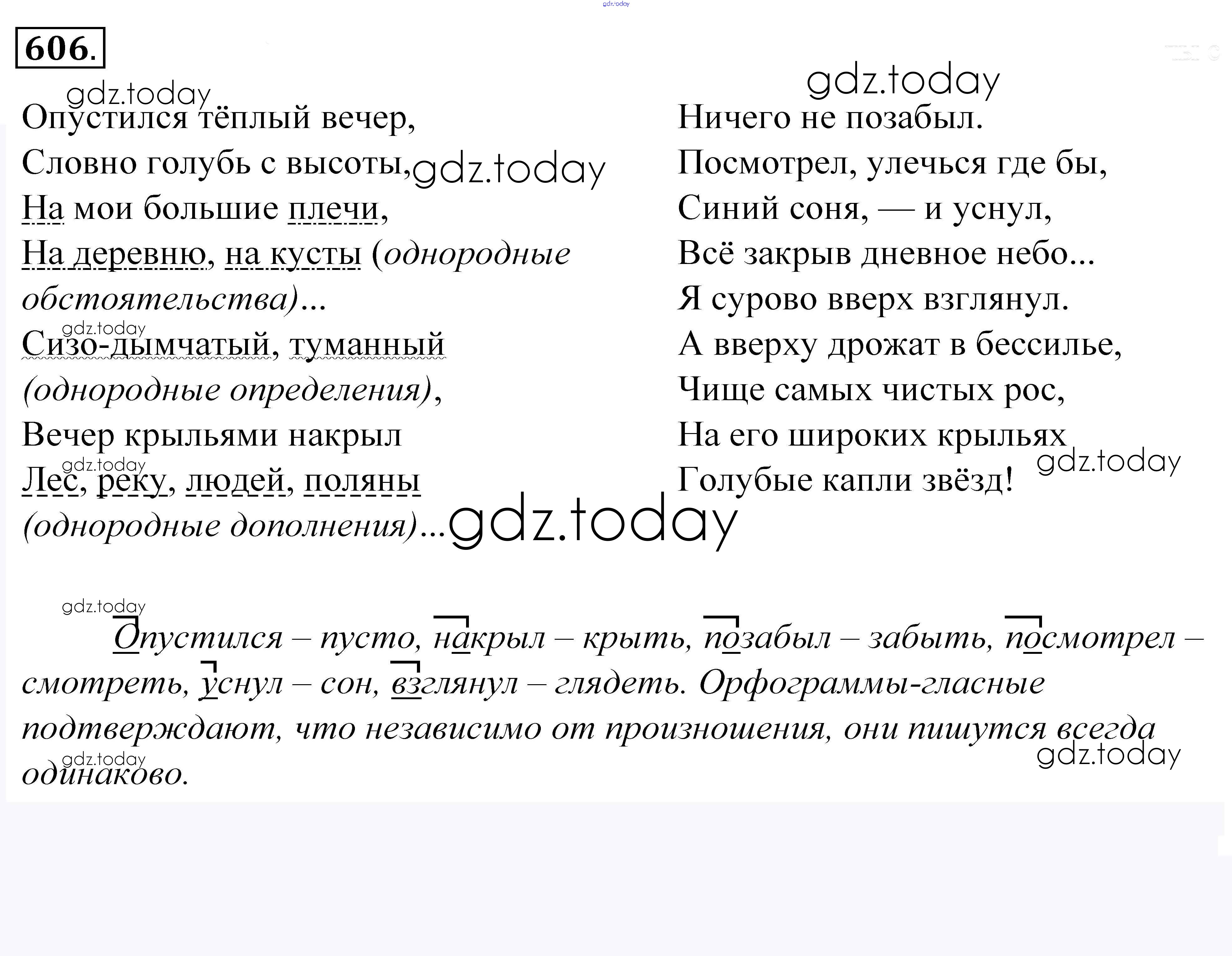 На страницах сайта gdz.today вы найдете учебный и вспомогательный материал, направленный на улучшения знаний школьной программы. ГДЗ - онлайн мир знаний Решение к упражнениям 606 Учебнику по Русскому языку для 5 класса Купалова, Еремеева Дрофа 2015