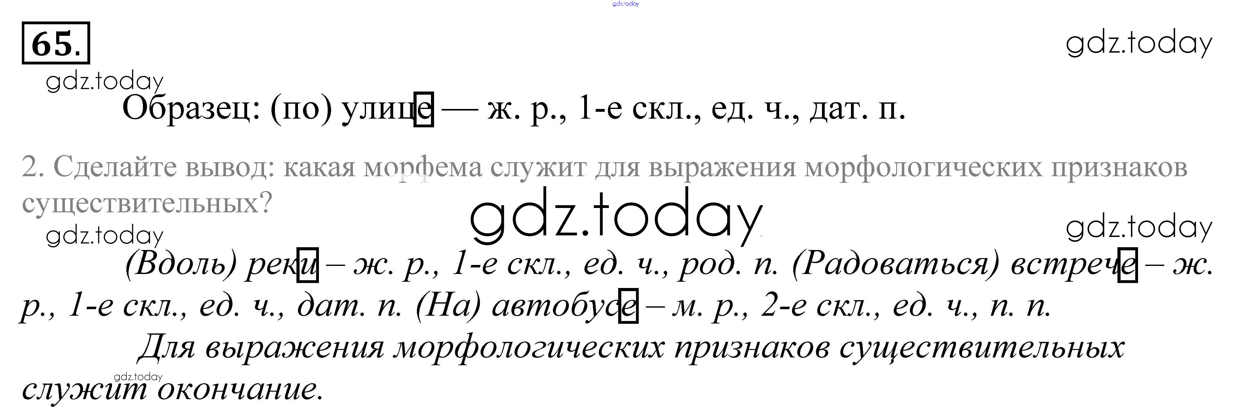 На страницах сайта gdz.today вы найдете учебный и вспомогательный материал, направленный на улучшения знаний школьной программы. ГДЗ - онлайн мир знаний Решение к упражнениям 65 Учебнику по Русскому языку для 5 класса Купалова, Еремеева Дрофа 2015