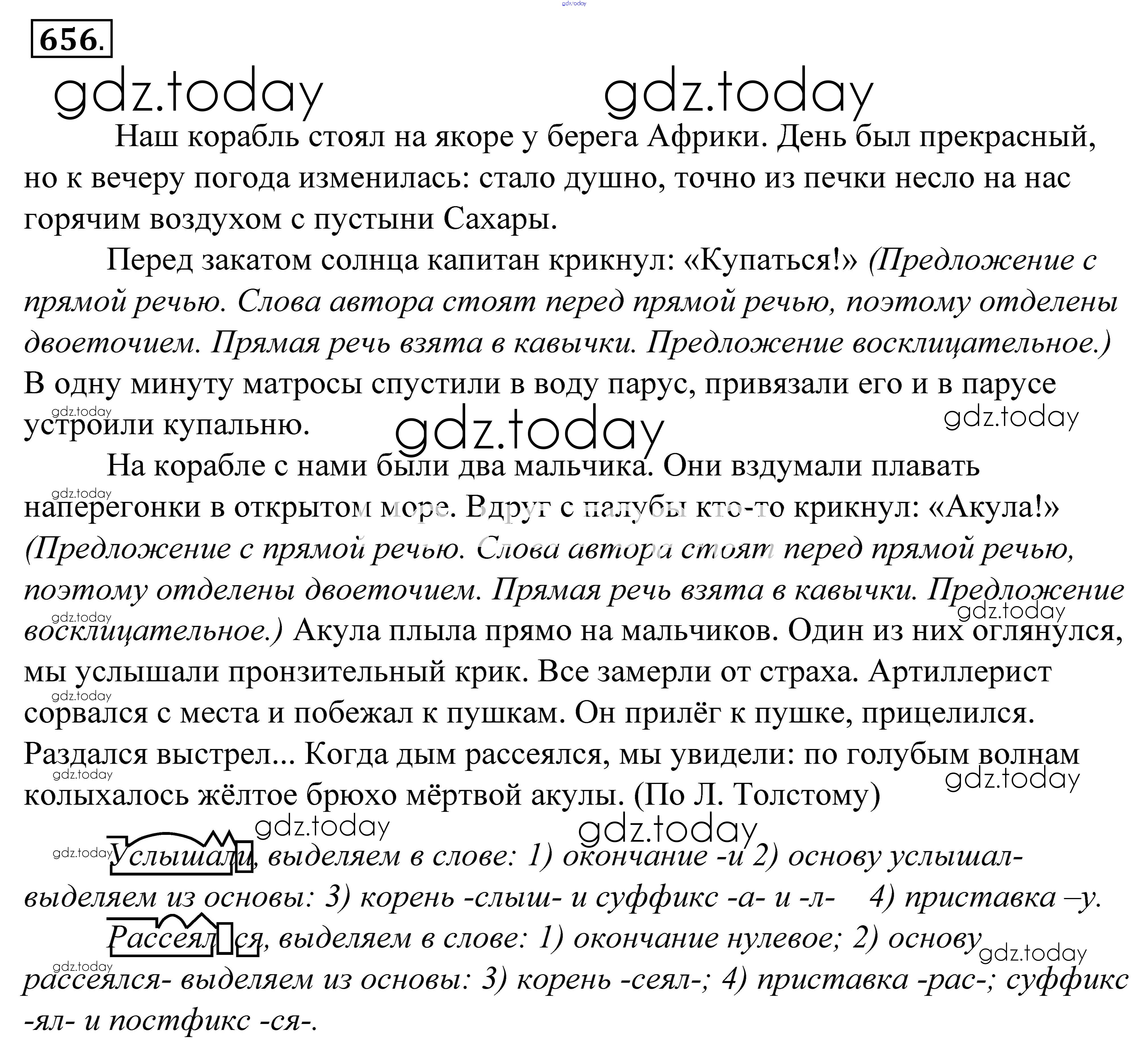 На страницах сайта gdz.today вы найдете учебный и вспомогательный материал, направленный на улучшения знаний школьной программы. ГДЗ - онлайн мир знаний Решение к упражнениям 656 Учебнику по Русскому языку для 5 класса Купалова, Еремеева Дрофа 2015