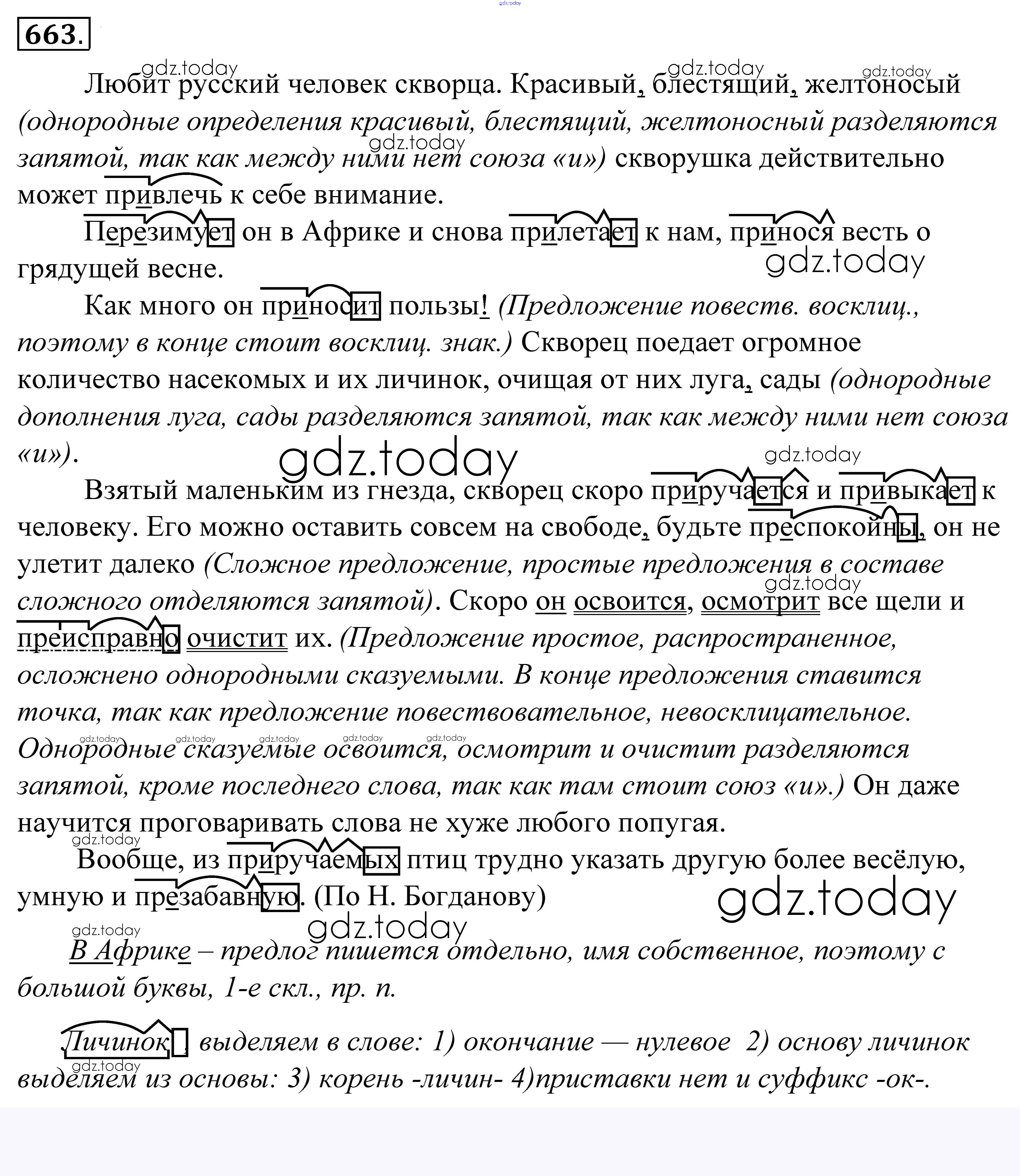 Ответы к Решение к упражнениям 663 Учебнику по Русскому языку для 5 класса Купалова, Еремеева Дрофа 2015
