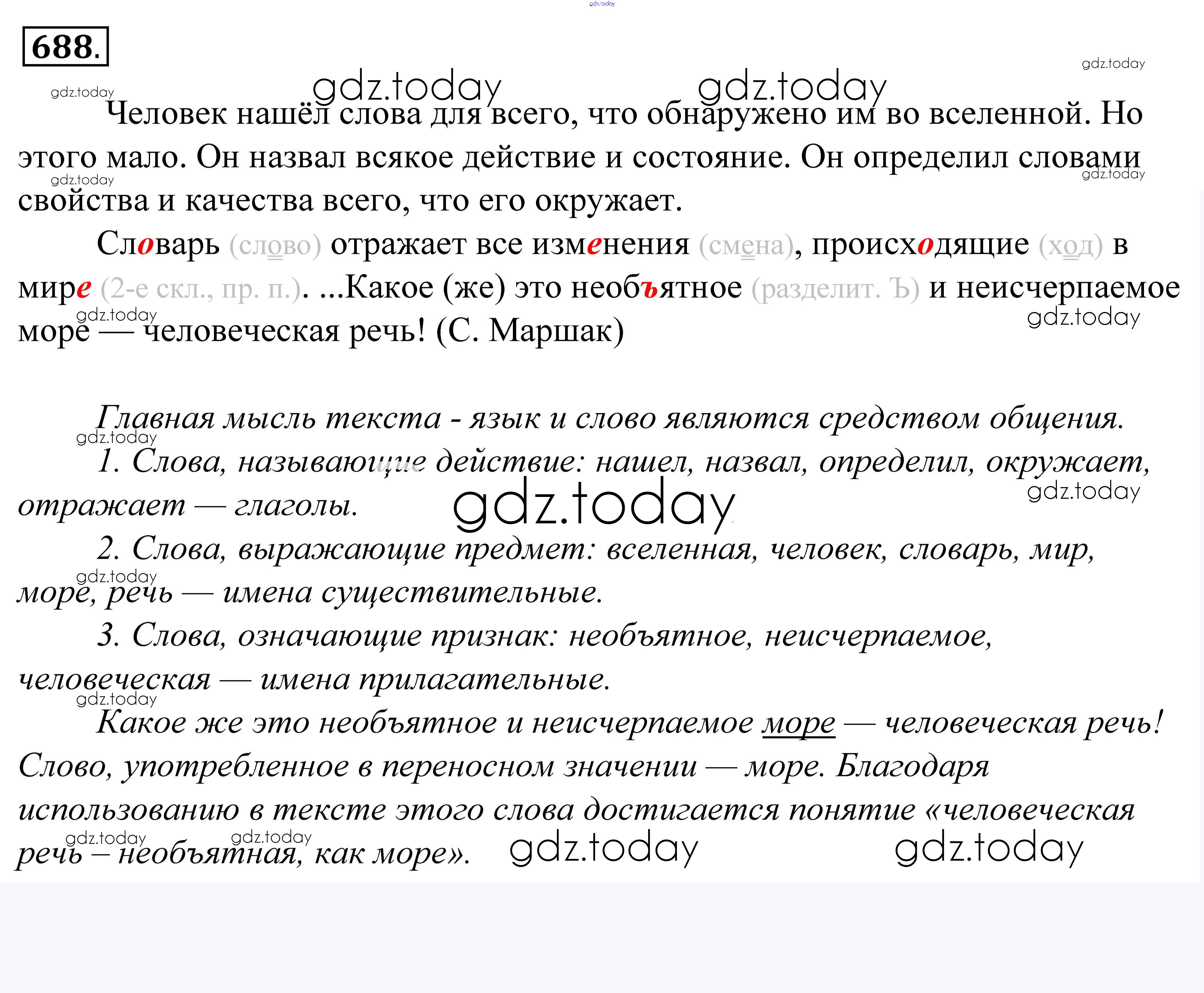 На страницах сайта gdz.today вы найдете учебный и вспомогательный материал, направленный на улучшения знаний школьной программы. ГДЗ - онлайн мир знаний Решение к упражнениям 688 Учебнику по Русскому языку для 5 класса Купалова, Еремеева Дрофа 2015
