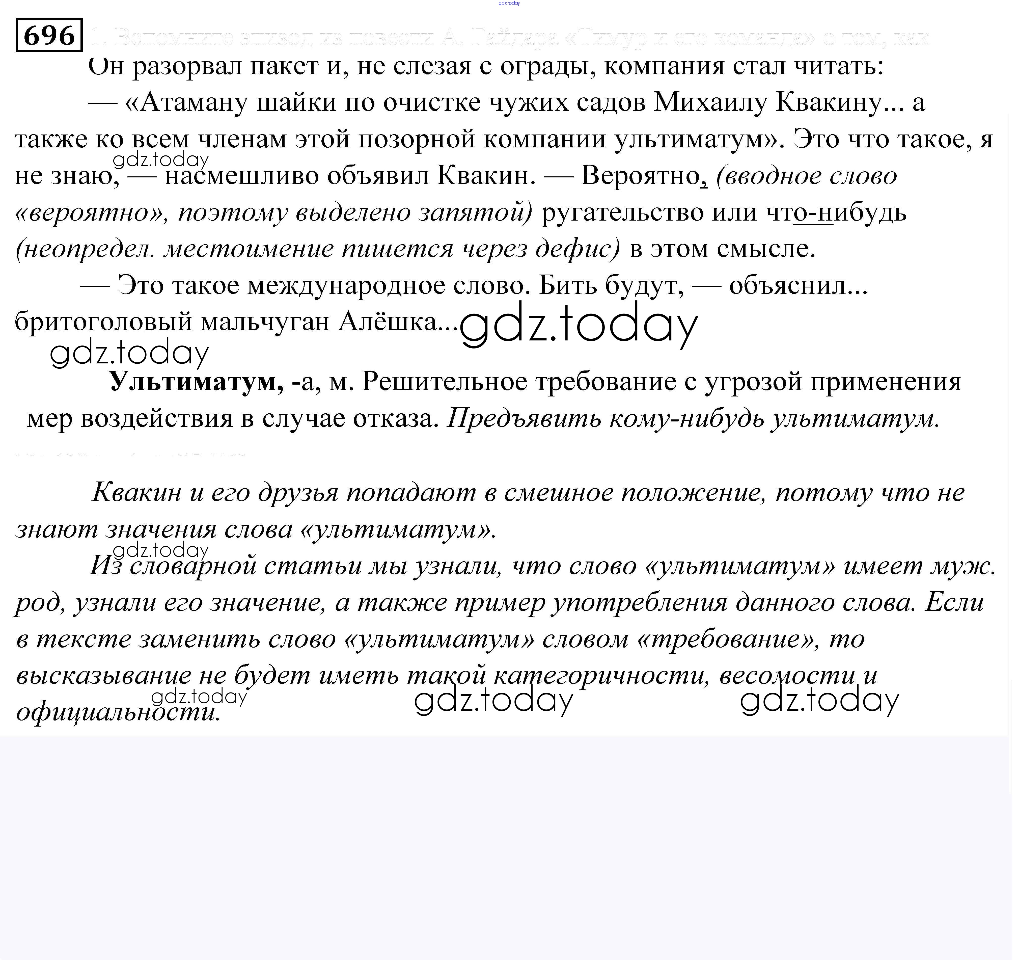 На страницах сайта gdz.today вы найдете учебный и вспомогательный материал, направленный на улучшения знаний школьной программы. ГДЗ - онлайн мир знаний Решение к упражнениям 696 Учебнику по Русскому языку для 5 класса Купалова, Еремеева Дрофа 2015