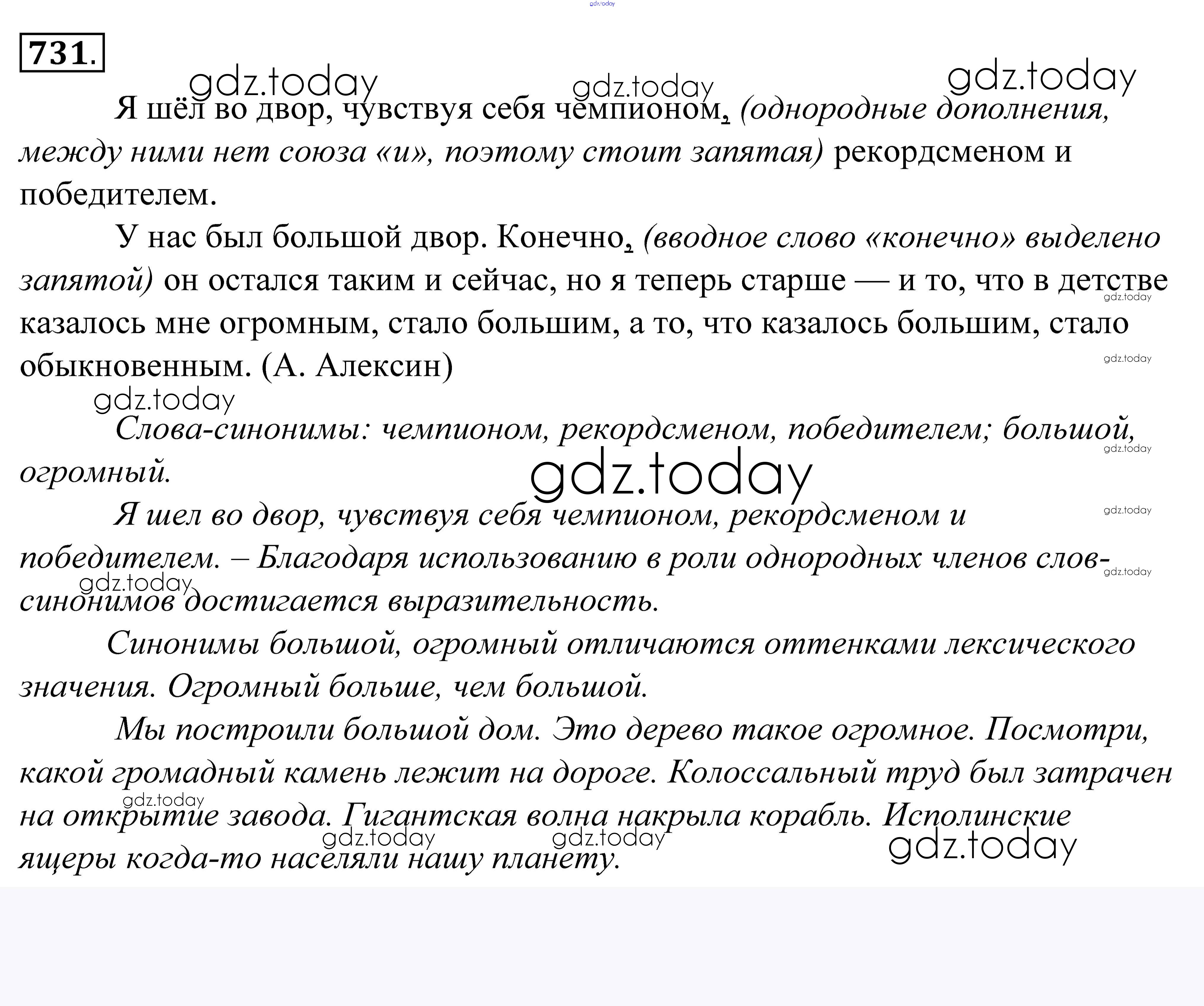 На страницах сайта gdz.today вы найдете учебный и вспомогательный материал, направленный на улучшения знаний школьной программы. ГДЗ - онлайн мир знаний Решение к упражнениям 731 Учебнику по Русскому языку для 5 класса Купалова, Еремеева Дрофа 2015