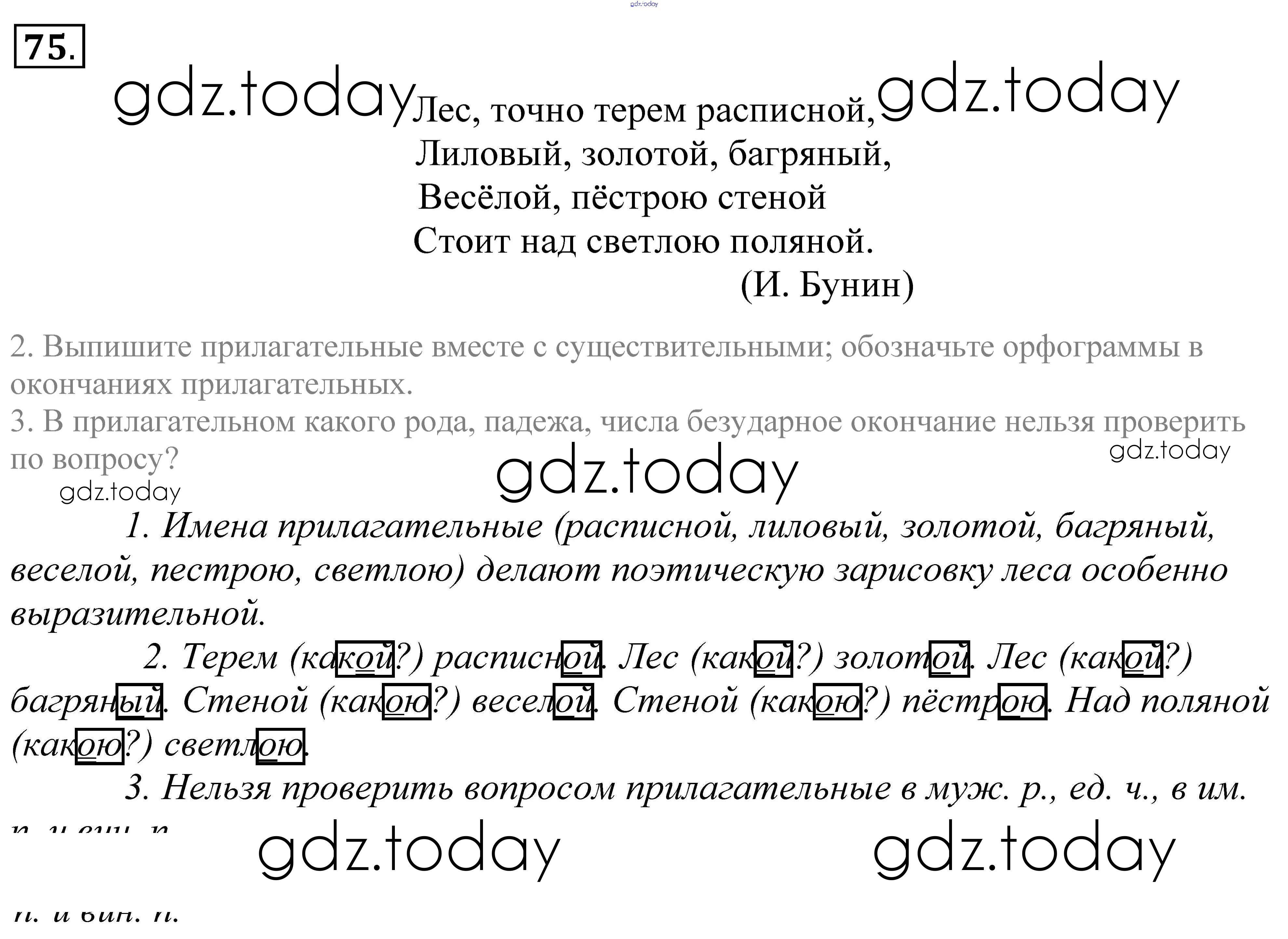 На страницах сайта gdz.today вы найдете учебный и вспомогательный материал, направленный на улучшения знаний школьной программы. ГДЗ - онлайн мир знаний Решение к упражнениям 75 Учебнику по Русскому языку для 5 класса Купалова, Еремеева Дрофа 2015