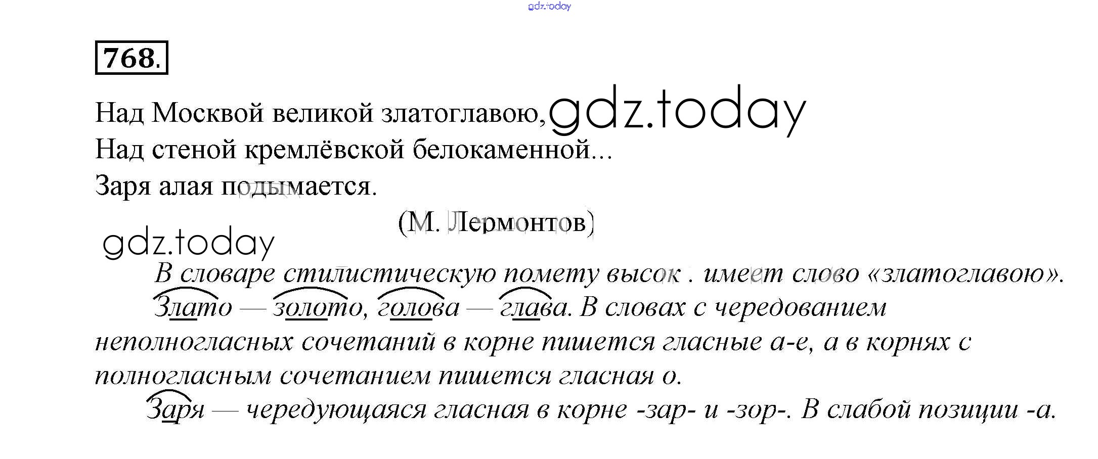 Ответы к Решение к упражнениям 768 Учебнику по Русскому языку для 5 класса Купалова, Еремеева Дрофа 2015