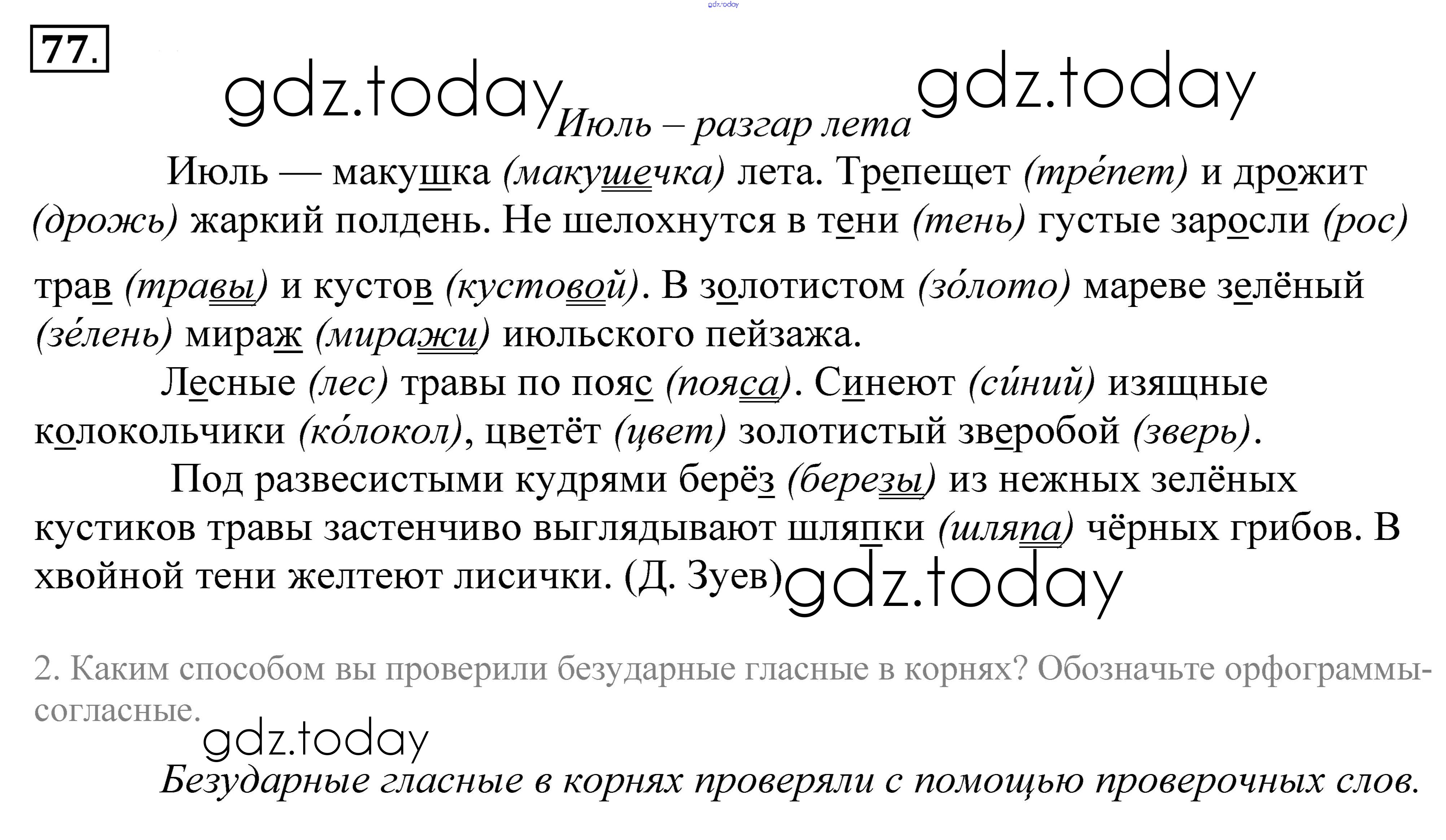 На страницах сайта gdz.today вы найдете учебный и вспомогательный материал, направленный на улучшения знаний школьной программы. ГДЗ - онлайн мир знаний Решение к упражнениям 77 Учебнику по Русскому языку для 5 класса Купалова, Еремеева Дрофа 2015