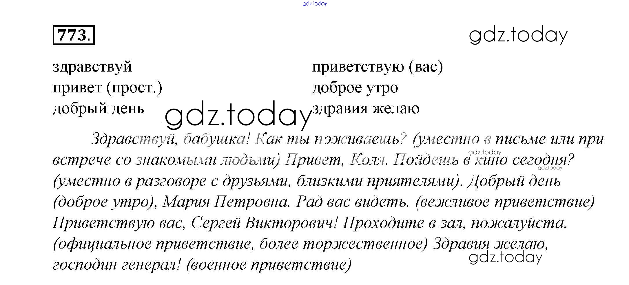На страницах сайта gdz.today вы найдете учебный и вспомогательный материал, направленный на улучшения знаний школьной программы. ГДЗ - онлайн мир знаний Решение к упражнениям 773 Учебнику по Русскому языку для 5 класса Купалова, Еремеева Дрофа 2015