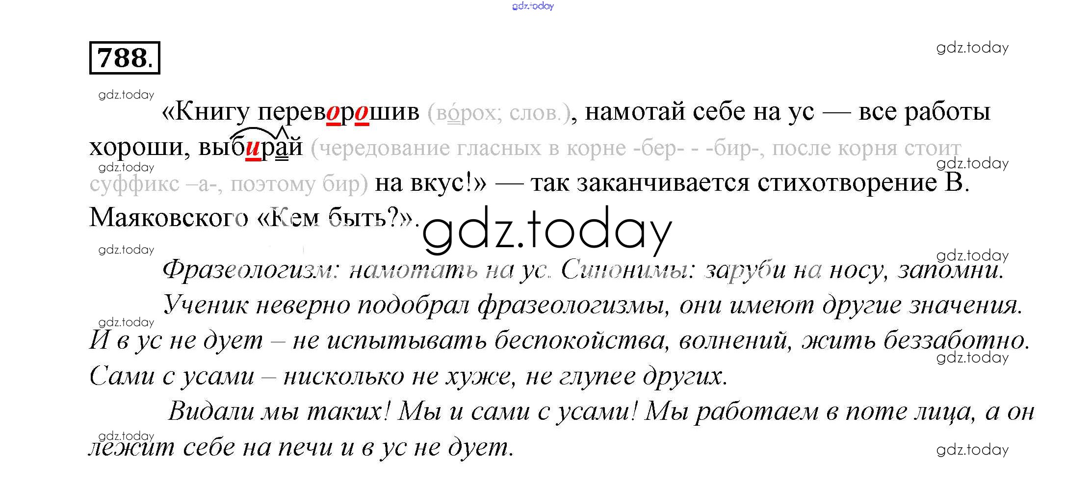 Ответы к Решение к упражнениям 788 Учебнику по Русскому языку для 5 класса Купалова, Еремеева Дрофа 2015