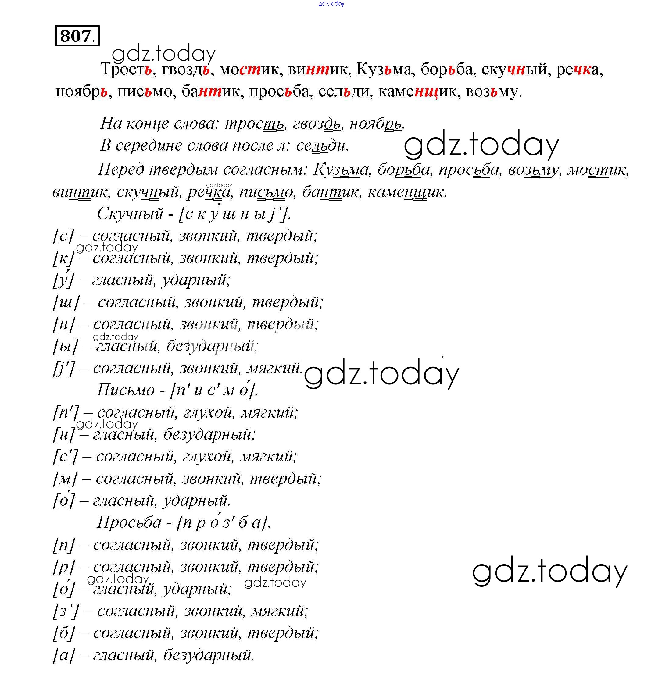 Ответы к Решение к упражнениям 807 Учебнику по Русскому языку для 5 класса Купалова, Еремеева Дрофа 2015