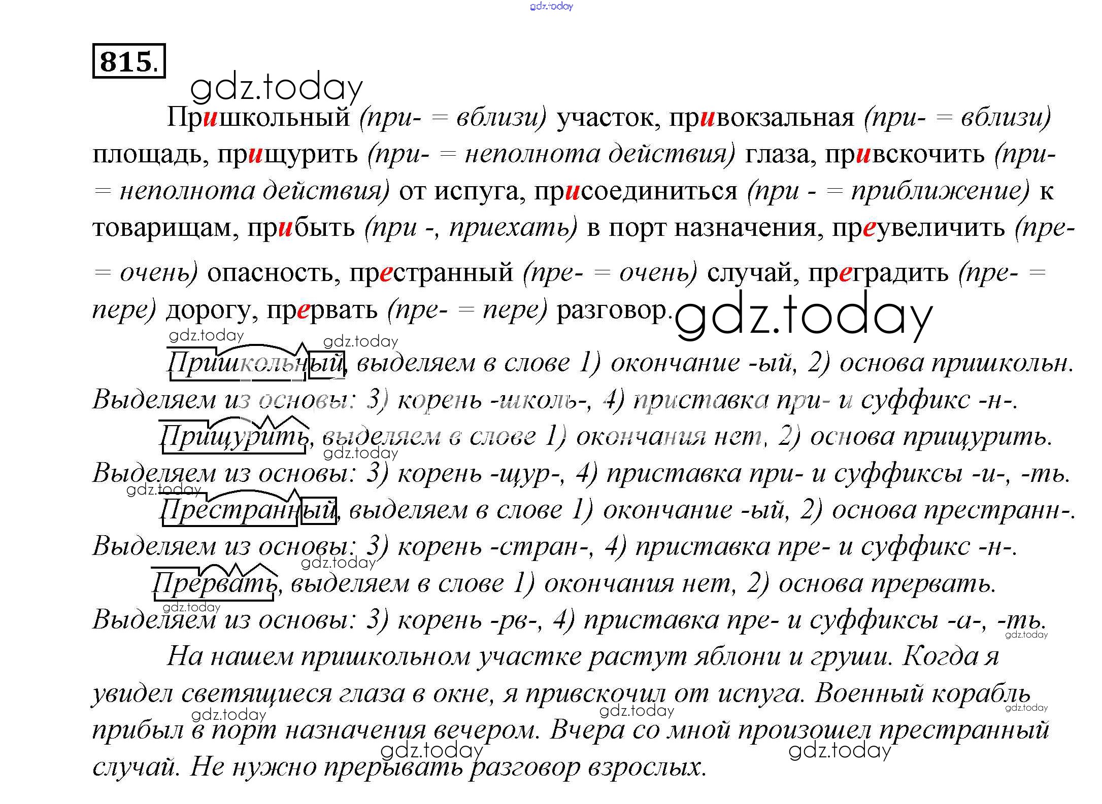 На страницах сайта gdz.today вы найдете учебный и вспомогательный материал, направленный на улучшения знаний школьной программы. ГДЗ - онлайн мир знаний Решение к упражнениям 815 Учебнику по Русскому языку для 5 класса Купалова, Еремеева Дрофа 2015
