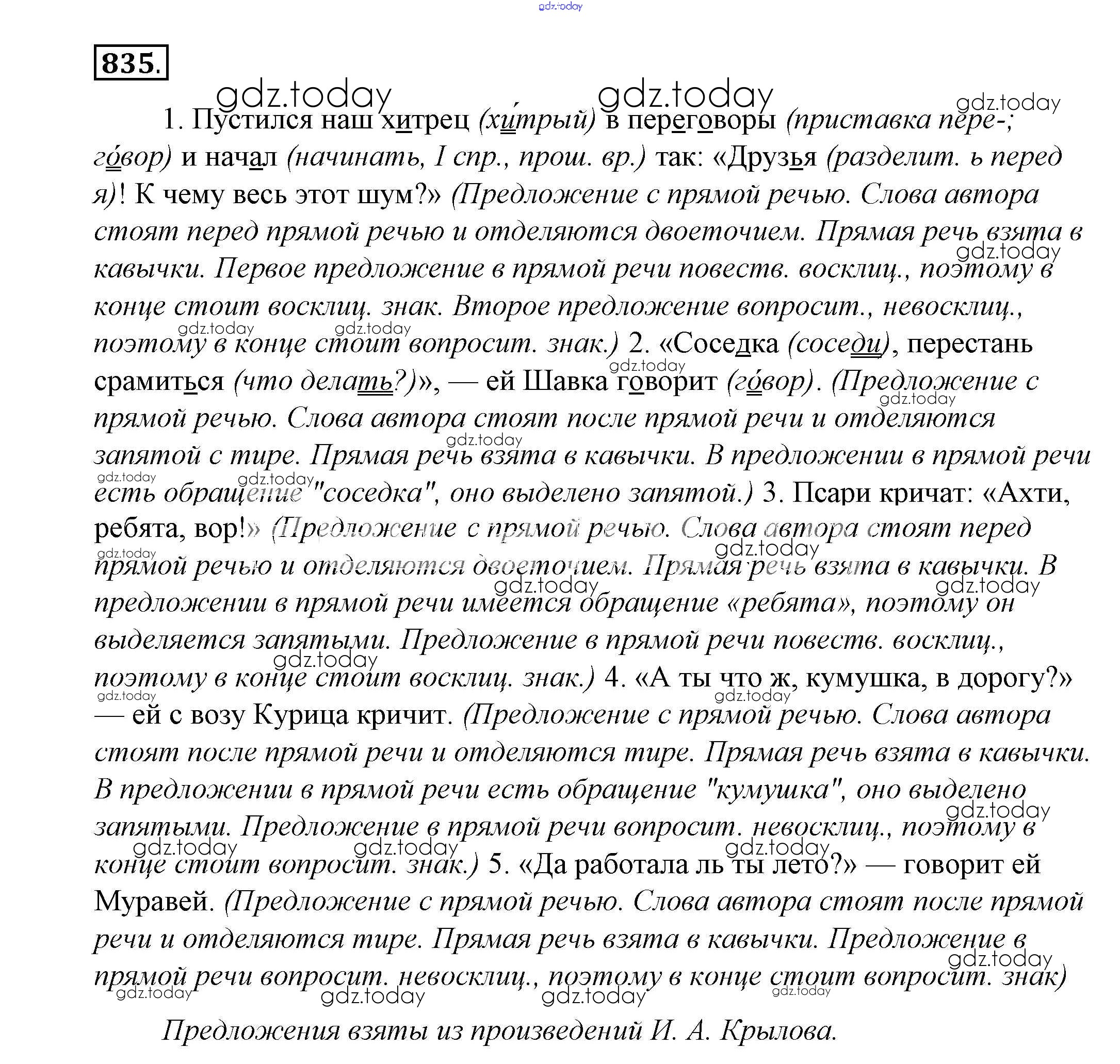 На страницах сайта gdz.today вы найдете учебный и вспомогательный материал, направленный на улучшения знаний школьной программы. ГДЗ - онлайн мир знаний Решение к упражнениям 835 Учебнику по Русскому языку для 5 класса Купалова, Еремеева Дрофа 2015