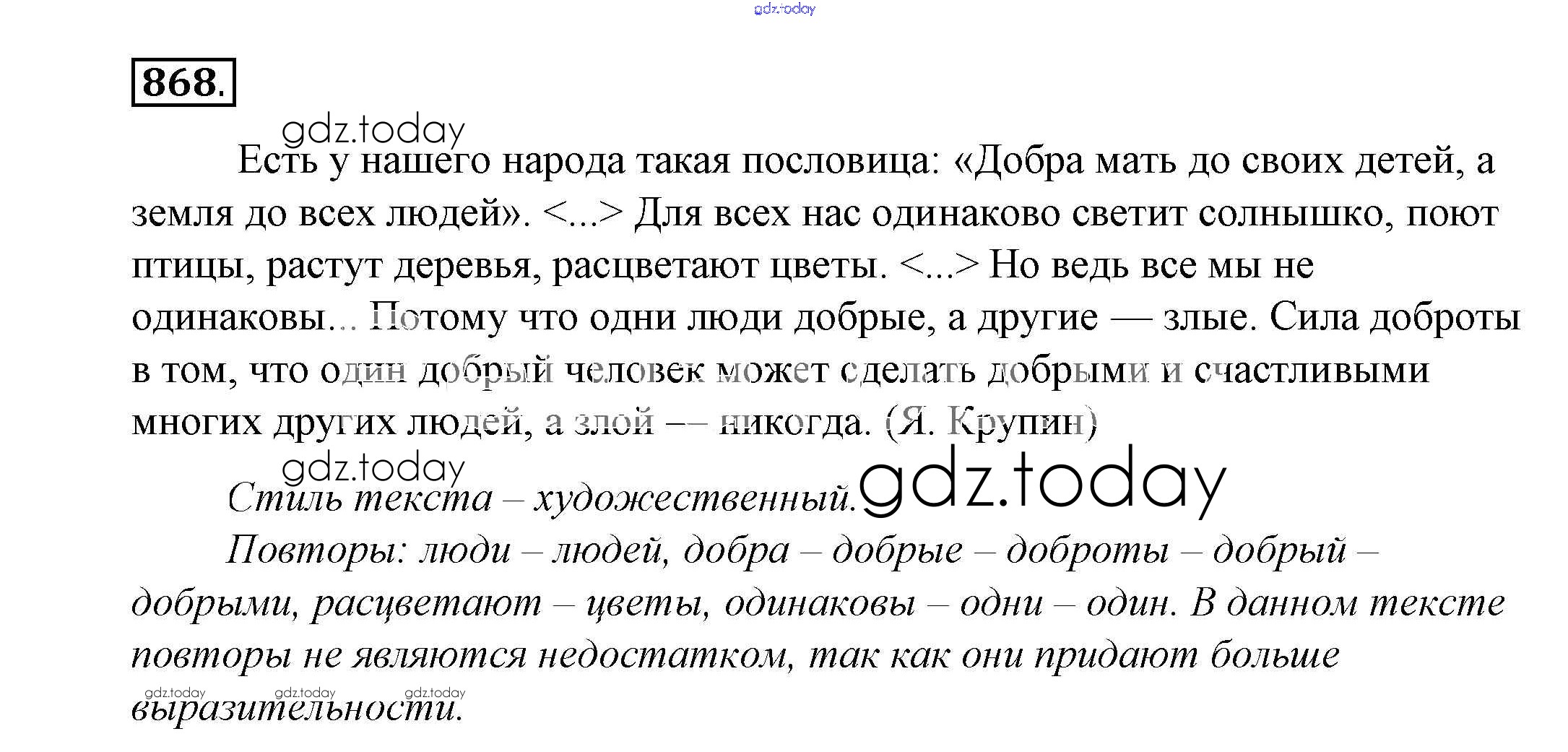 Ответы к Решение к упражнениям 868 Учебнику по Русскому языку для 5 класса Купалова, Еремеева Дрофа 2015