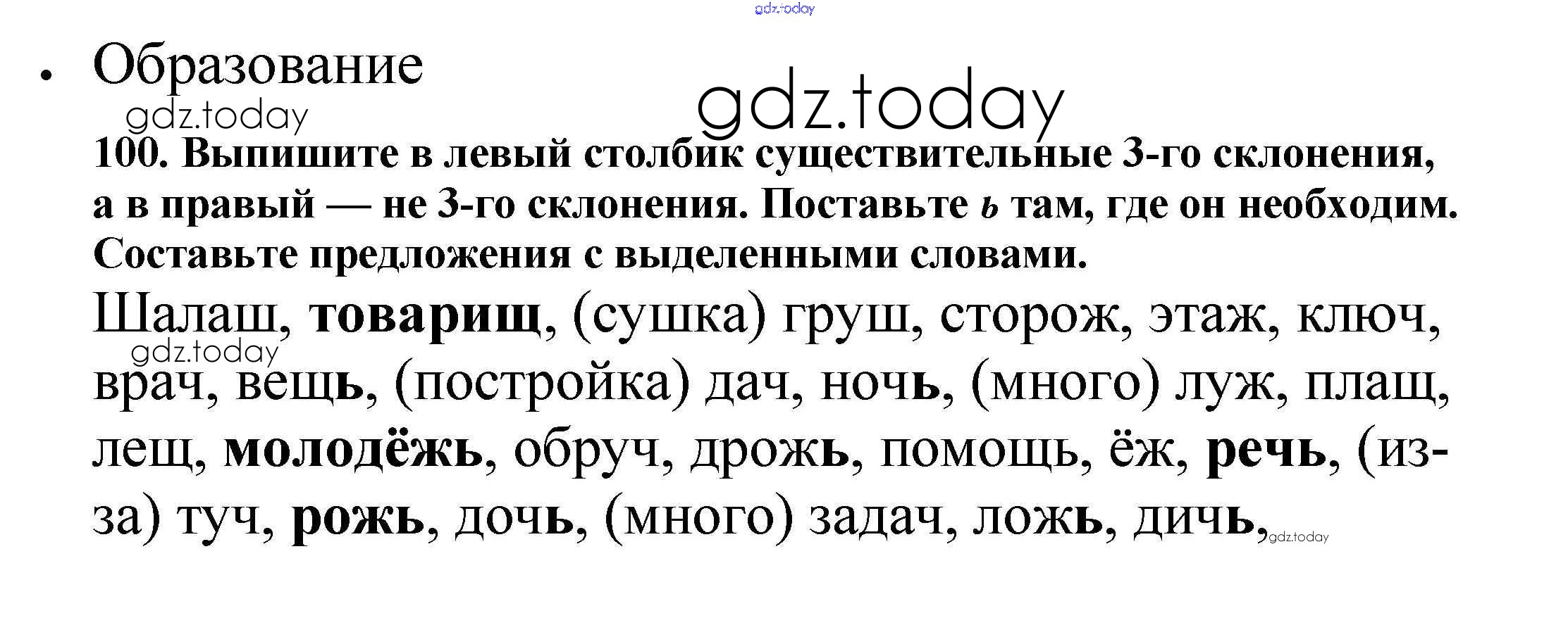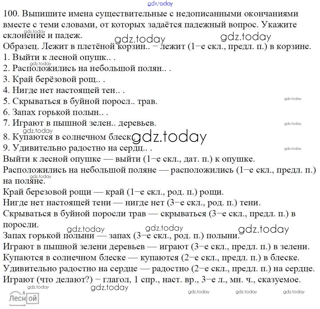 Ответы к Часть 1. Решение к упражнениям 100 Учебнику по Русскому языку для 5 класса Баранов, Ладыженская Просвещение, Просвещение 2016, 2019