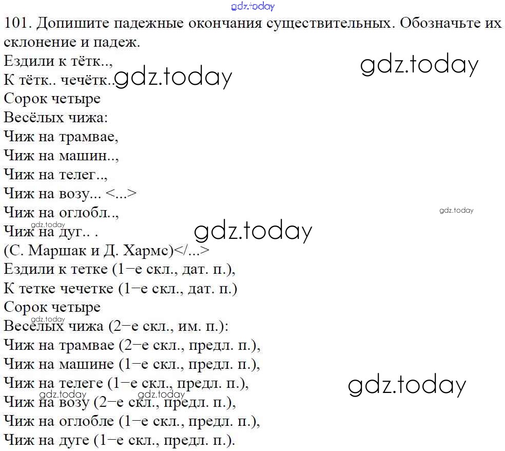 На страницах сайта gdz.today вы найдете учебный и вспомогательный материал, направленный на улучшения знаний школьной программы. ГДЗ - онлайн мир знаний Часть 1. Решение к упражнениям 101 Учебнику по Русскому языку для 5 класса Баранов, Ладыженская Просвещение, Просвещение 2016, 2019