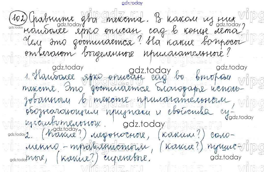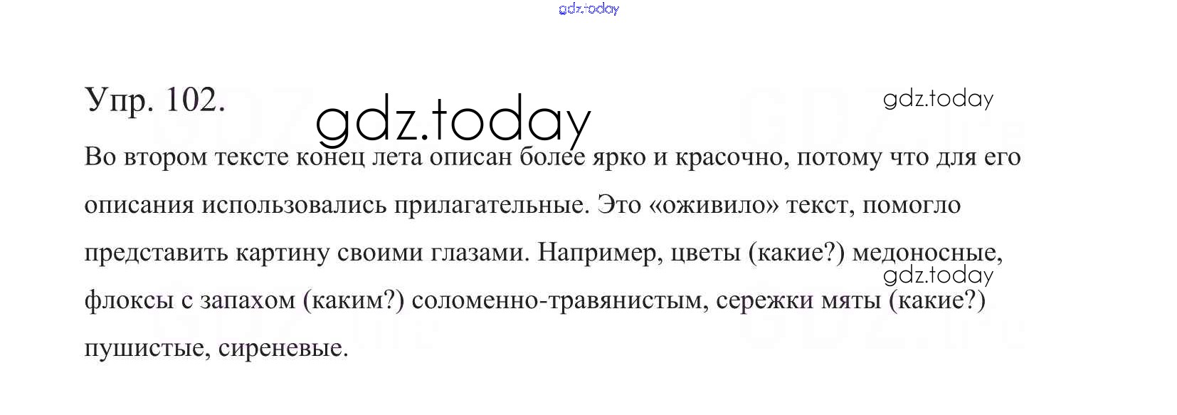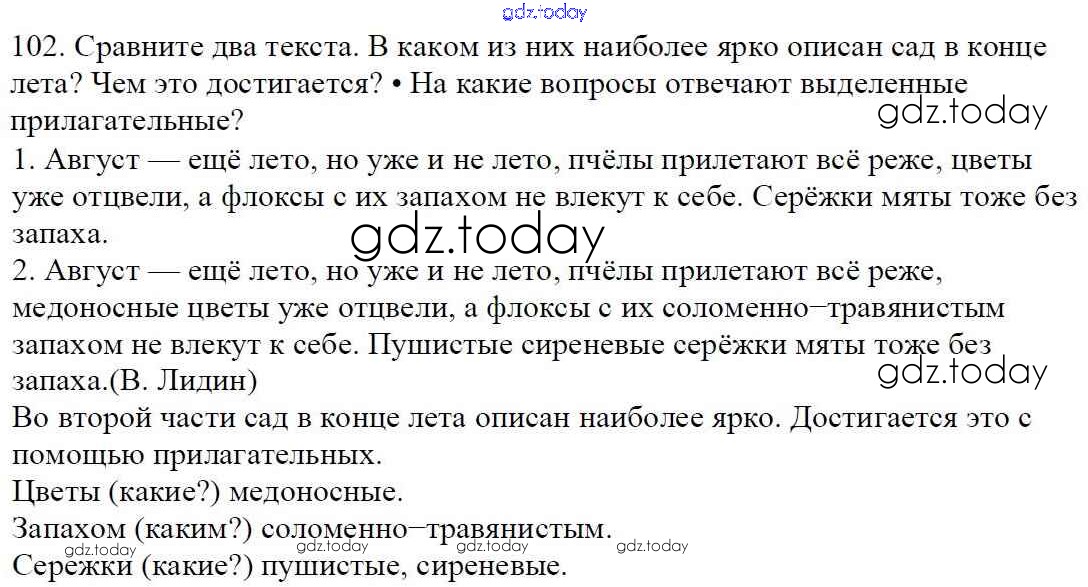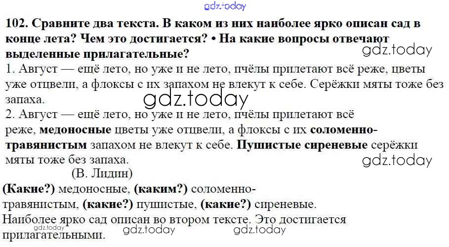 Ответы к Часть 1. Решение к упражнениям 102 Учебнику по Русскому языку для 5 класса Баранов, Ладыженская Просвещение, Просвещение 2016, 2019