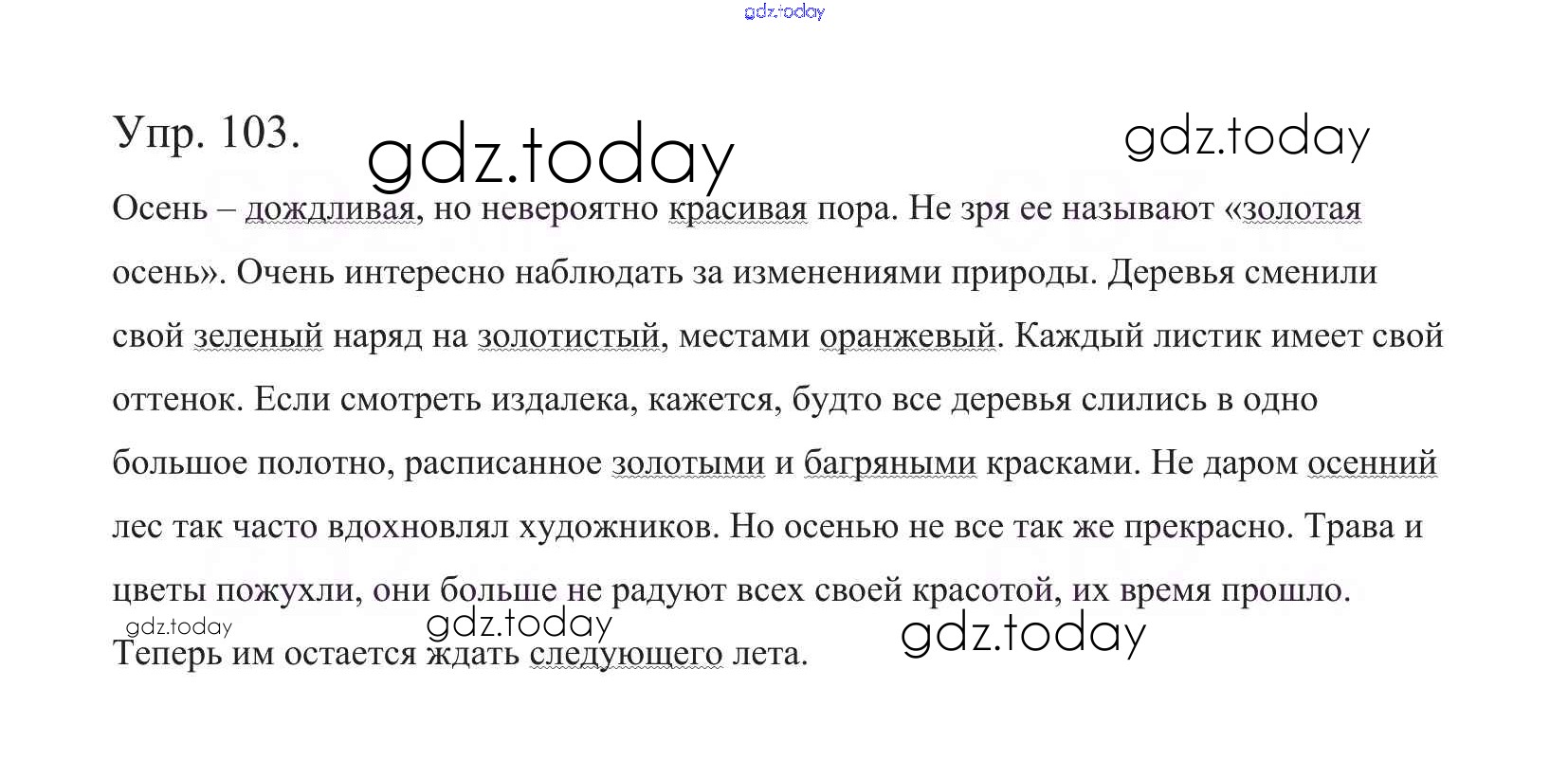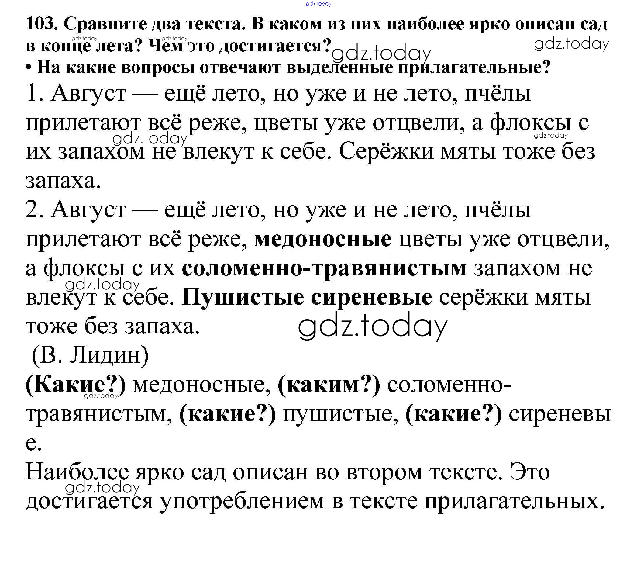 Ответы к Часть 1. Решение к упражнениям 103 Учебнику по Русскому языку для 5 класса Баранов, Ладыженская Просвещение, Просвещение 2016, 2019