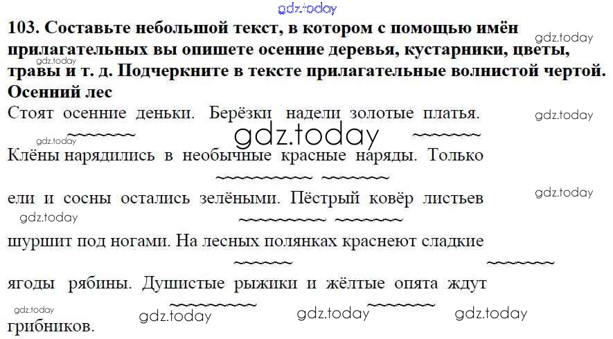 На страницах сайта gdz.today вы найдете учебный и вспомогательный материал, направленный на улучшения знаний школьной программы. ГДЗ - онлайн мир знаний Часть 1. Решение к упражнениям 103 Учебнику по Русскому языку для 5 класса Баранов, Ладыженская Просвещение, Просвещение 2016, 2019