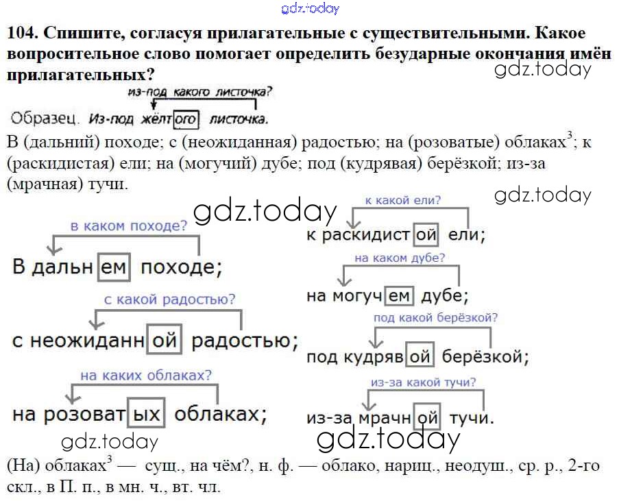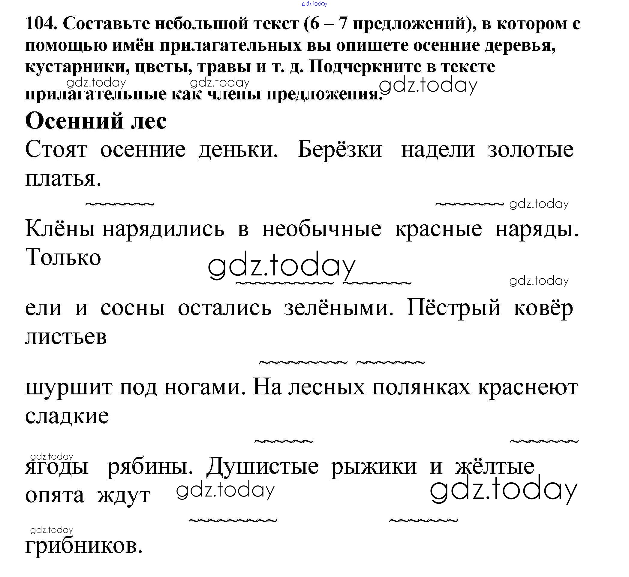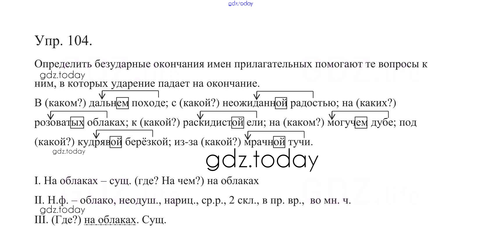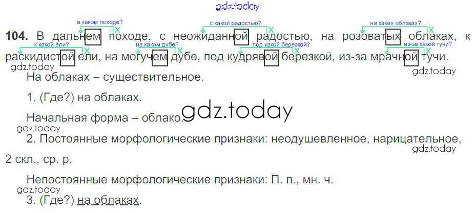 На страницах сайта gdz.today вы найдете учебный и вспомогательный материал, направленный на улучшения знаний школьной программы. ГДЗ - онлайн мир знаний Часть 1. Решение к упражнениям 104 Учебнику по Русскому языку для 5 класса Баранов, Ладыженская Просвещение, Просвещение 2016, 2019