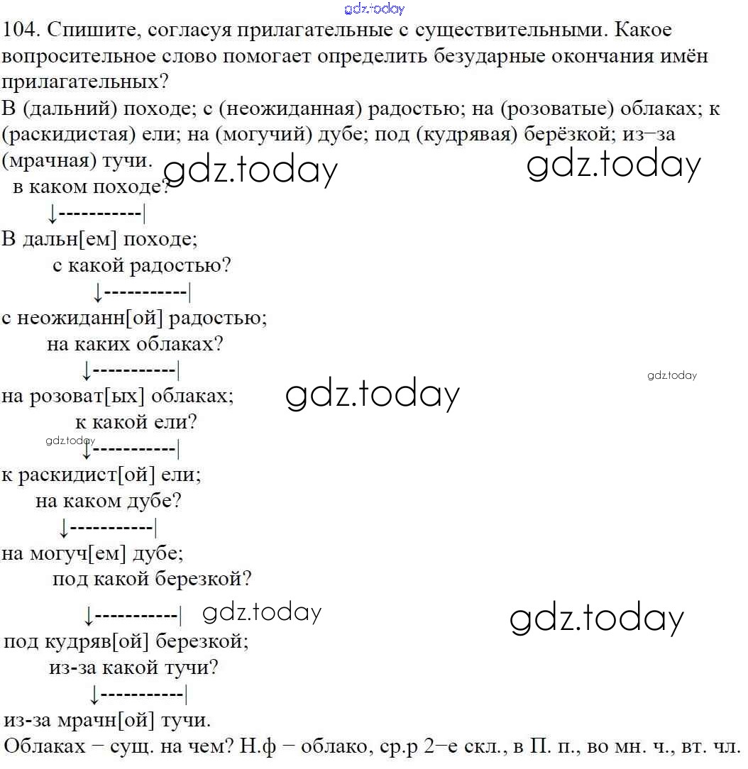 Ответы к Часть 1. Решение к упражнениям 104 Учебнику по Русскому языку для 5 класса Баранов, Ладыженская Просвещение, Просвещение 2016, 2019