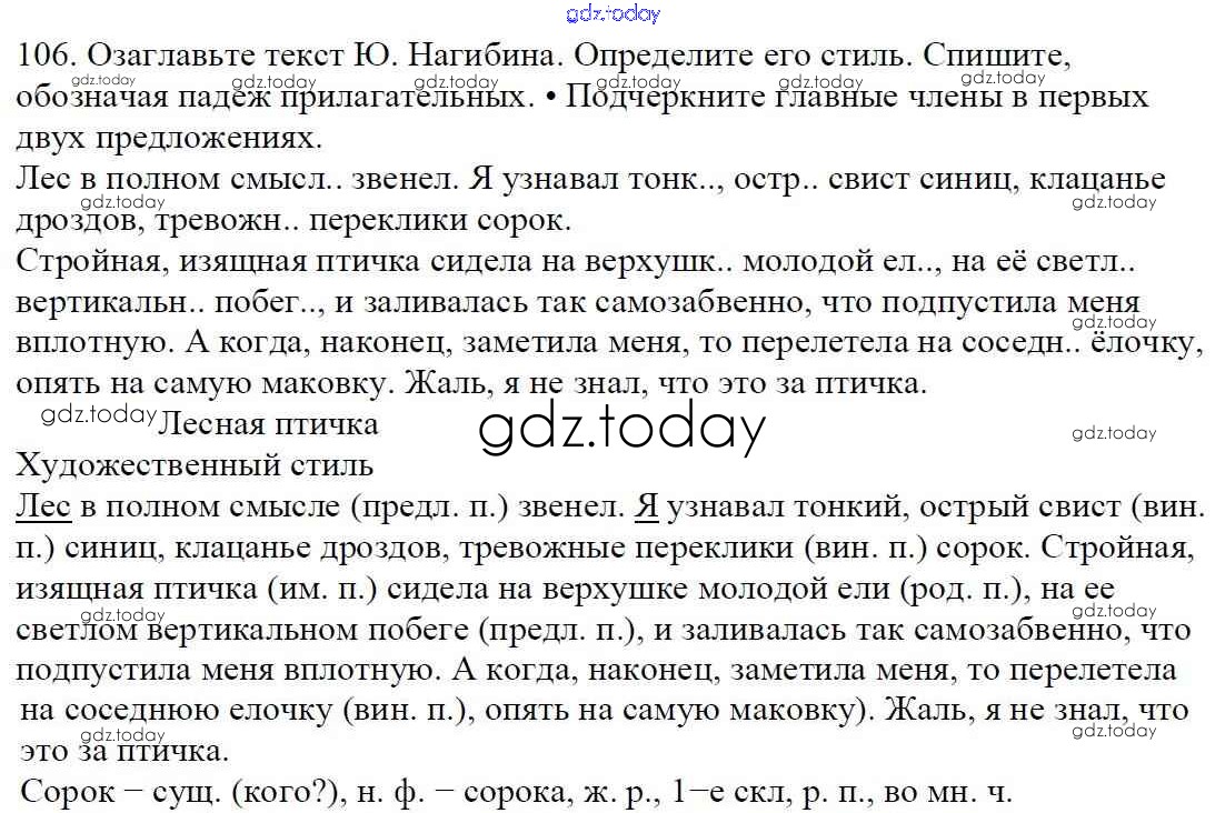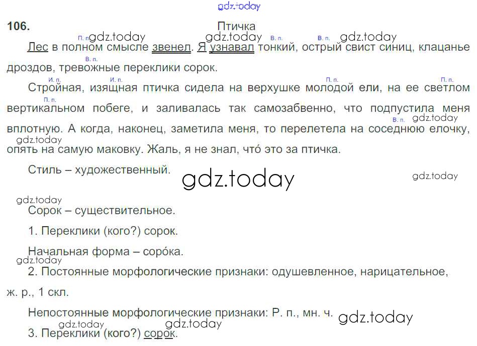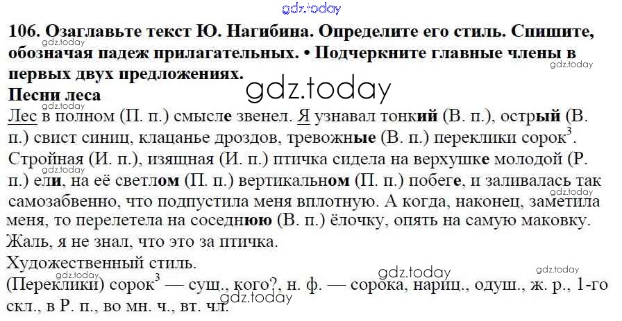 На страницах сайта gdz.today вы найдете учебный и вспомогательный материал, направленный на улучшения знаний школьной программы. ГДЗ - онлайн мир знаний Часть 1. Решение к упражнениям 106 Учебнику по Русскому языку для 5 класса Баранов, Ладыженская Просвещение, Просвещение 2016, 2019