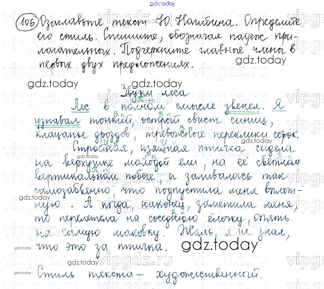Ответы к Часть 1. Решение к упражнениям 106 Учебнику по Русскому языку для 5 класса Баранов, Ладыженская Просвещение, Просвещение 2016, 2019