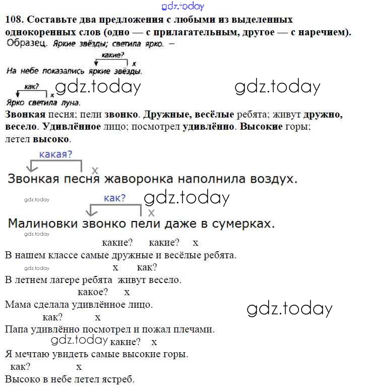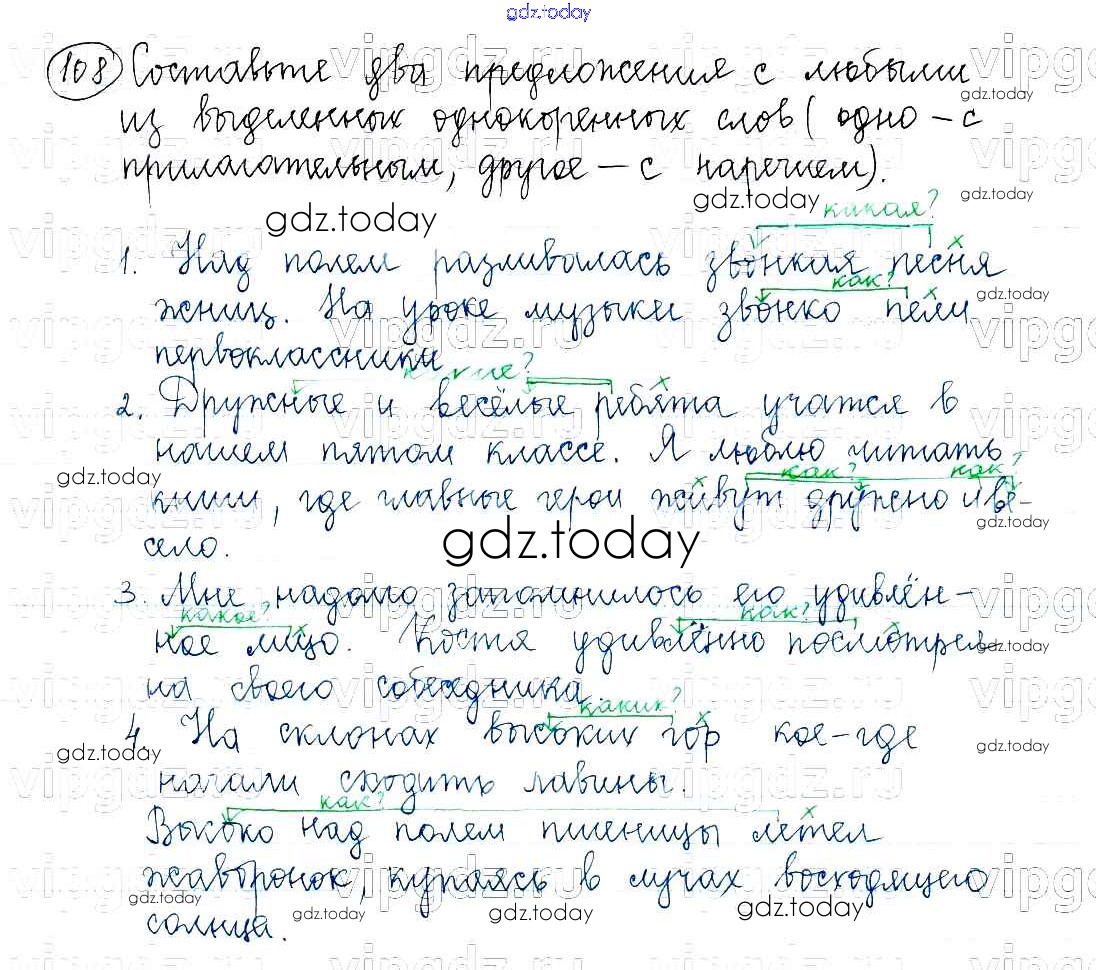 На страницах сайта gdz.today вы найдете учебный и вспомогательный материал, направленный на улучшения знаний школьной программы. ГДЗ - онлайн мир знаний Часть 1. Решение к упражнениям 108 Учебнику по Русскому языку для 5 класса Баранов, Ладыженская Просвещение, Просвещение 2016, 2019