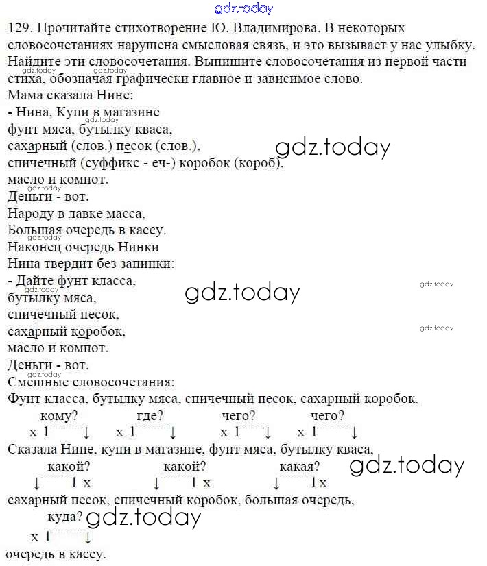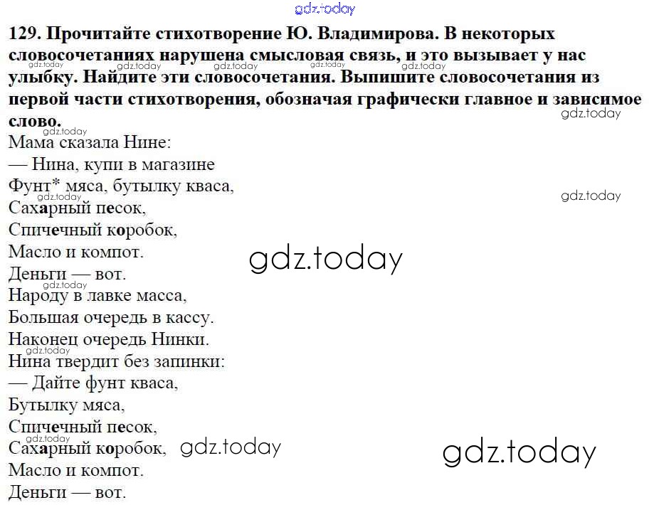 На страницах сайта gdz.today вы найдете учебный и вспомогательный материал, направленный на улучшения знаний школьной программы. ГДЗ - онлайн мир знаний Часть 1. Решение к упражнениям 129 Учебнику по Русскому языку для 5 класса Баранов, Ладыженская Просвещение, Просвещение 2016, 2019