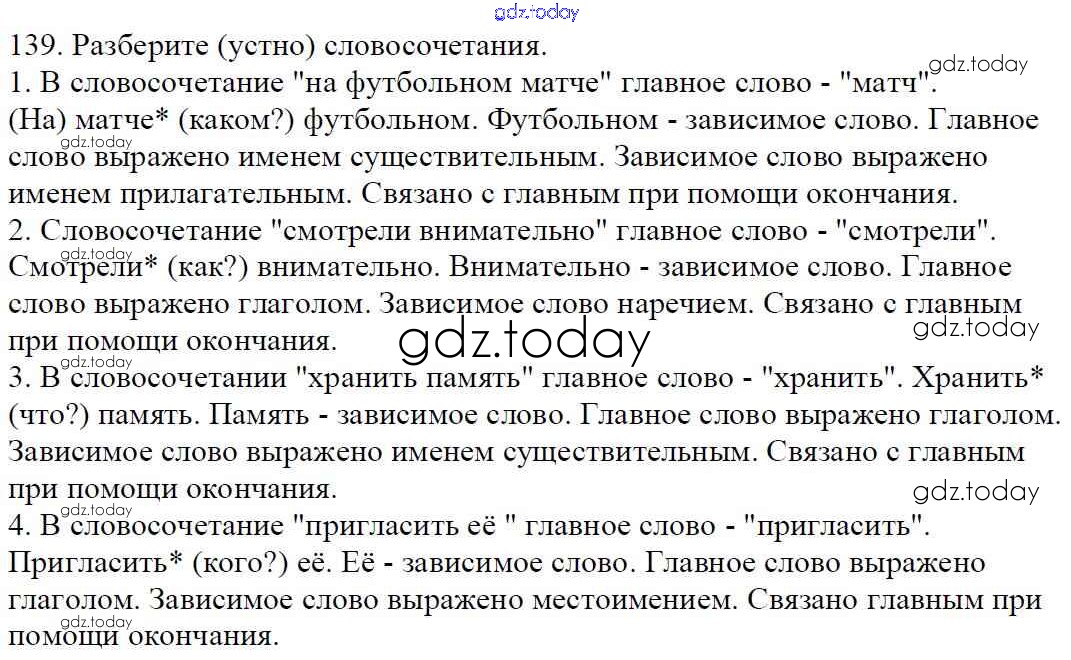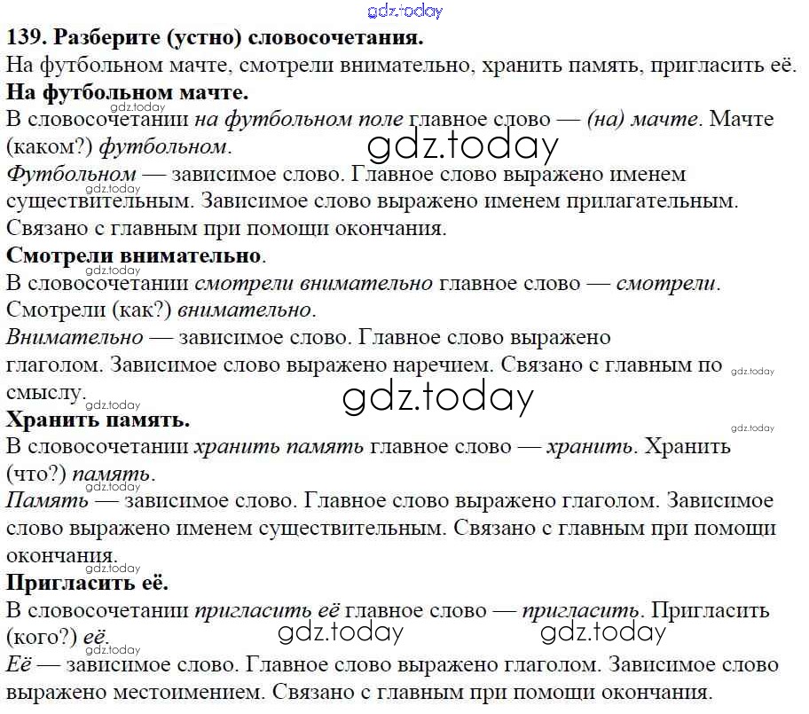 Ответы к Часть 1. Решение к упражнениям 139 Учебнику по Русскому языку для 5 класса Баранов, Ладыженская Просвещение, Просвещение 2016, 2019