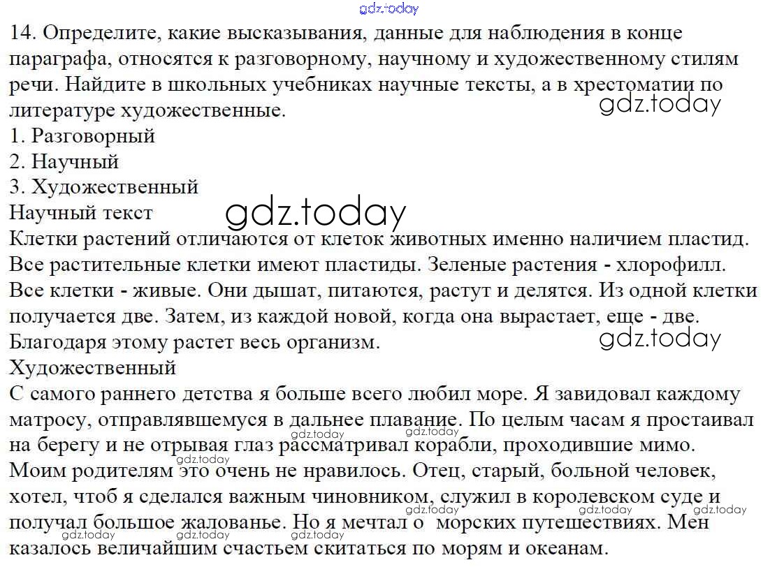 Ответы к Часть 1. Решение к упражнениям 14 Учебнику по Русскому языку для 5 класса Баранов, Ладыженская Просвещение, Просвещение 2016, 2019