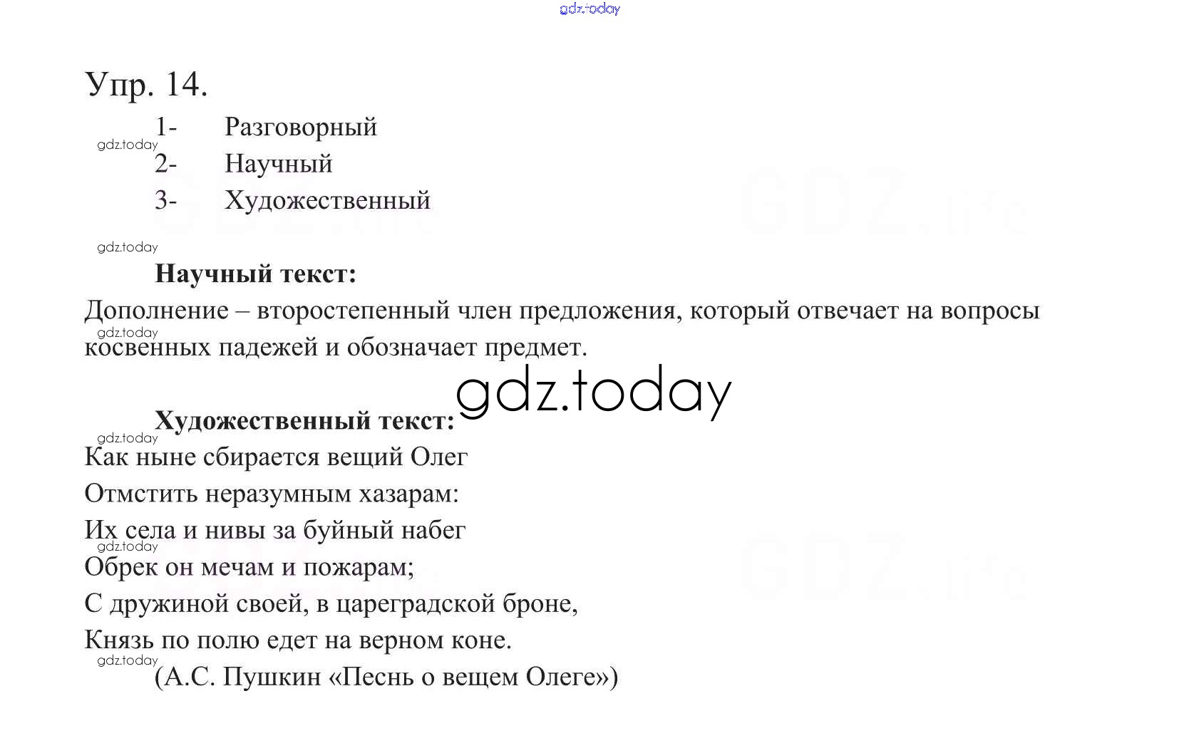 На страницах сайта gdz.today вы найдете учебный и вспомогательный материал, направленный на улучшения знаний школьной программы. ГДЗ - онлайн мир знаний Часть 1. Решение к упражнениям 14 Учебнику по Русскому языку для 5 класса Баранов, Ладыженская Просвещение, Просвещение 2016, 2019