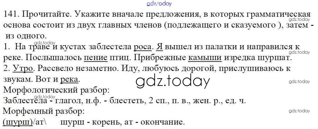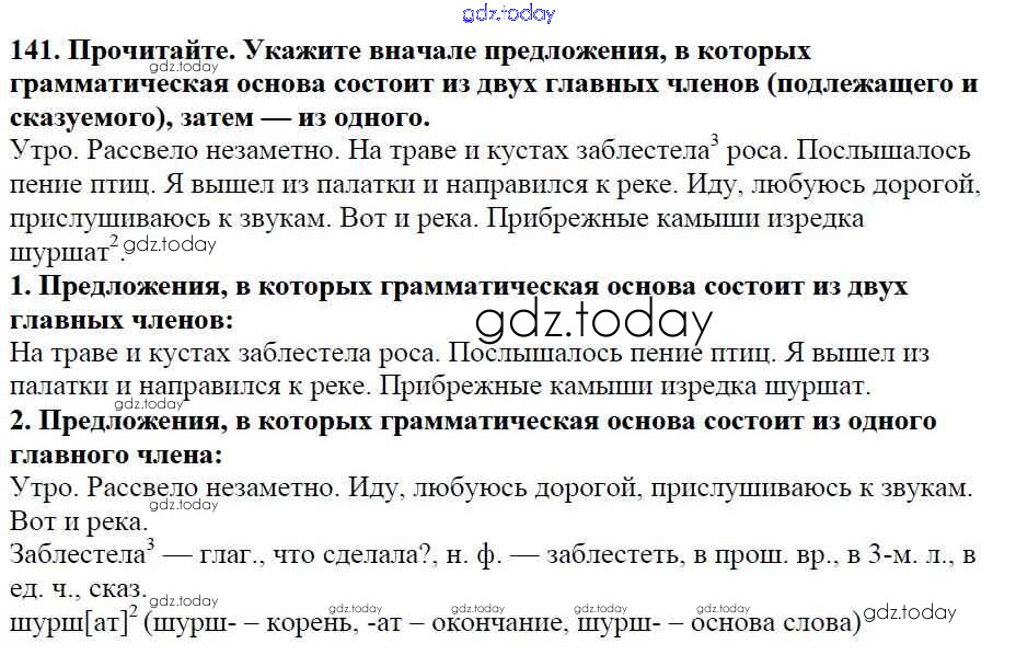 На страницах сайта gdz.today вы найдете учебный и вспомогательный материал, направленный на улучшения знаний школьной программы. ГДЗ - онлайн мир знаний Часть 1. Решение к упражнениям 141 Учебнику по Русскому языку для 5 класса Баранов, Ладыженская Просвещение, Просвещение 2016, 2019