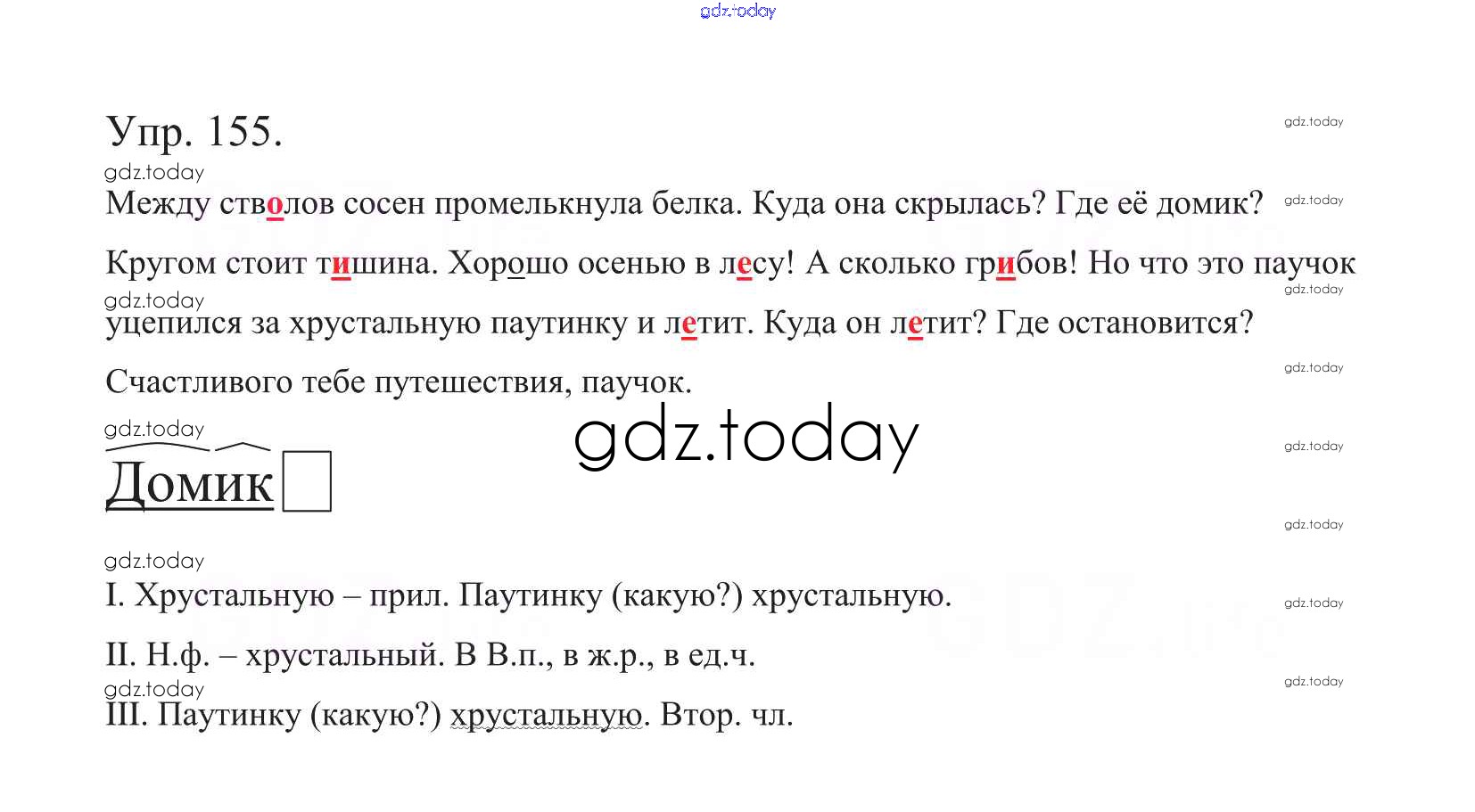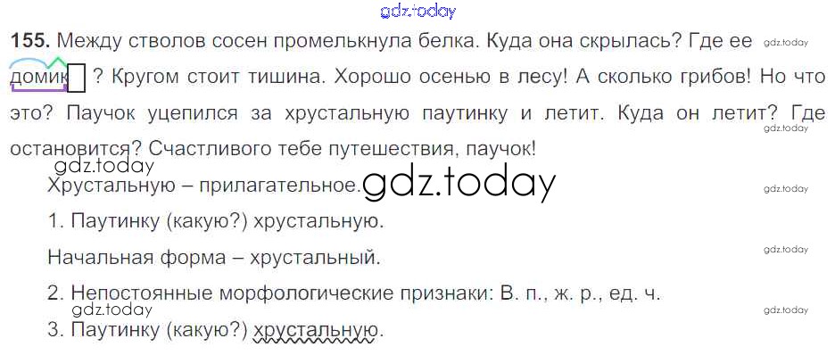 На страницах сайта gdz.today вы найдете учебный и вспомогательный материал, направленный на улучшения знаний школьной программы. ГДЗ - онлайн мир знаний Часть 1. Решение к упражнениям 155 Учебнику по Русскому языку для 5 класса Баранов, Ладыженская Просвещение, Просвещение 2016, 2019