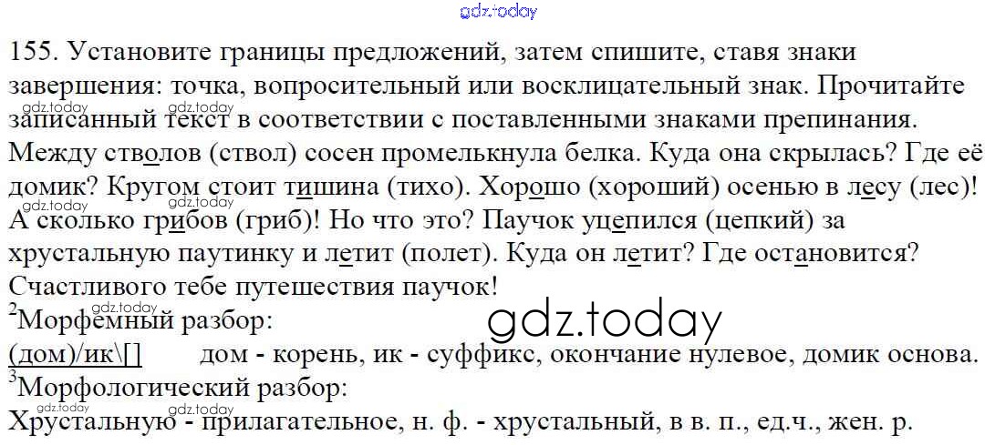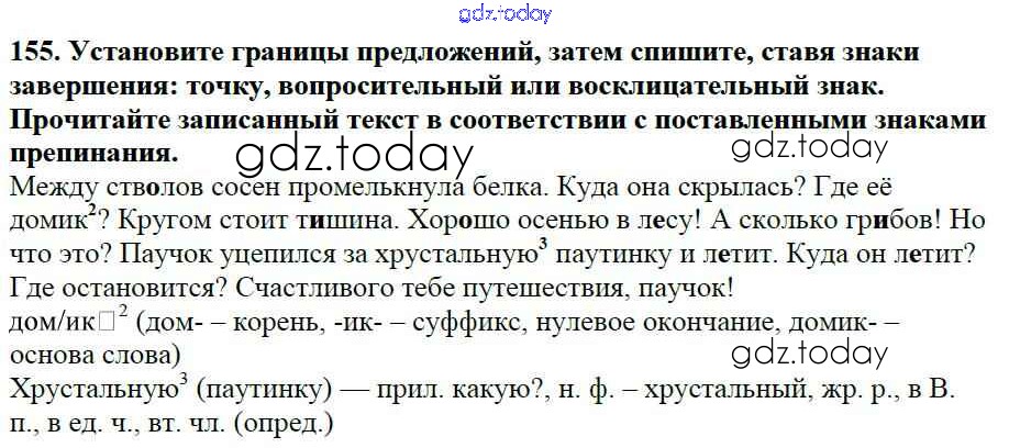 Ответы к Часть 1. Решение к упражнениям 155 Учебнику по Русскому языку для 5 класса Баранов, Ладыженская Просвещение, Просвещение 2016, 2019