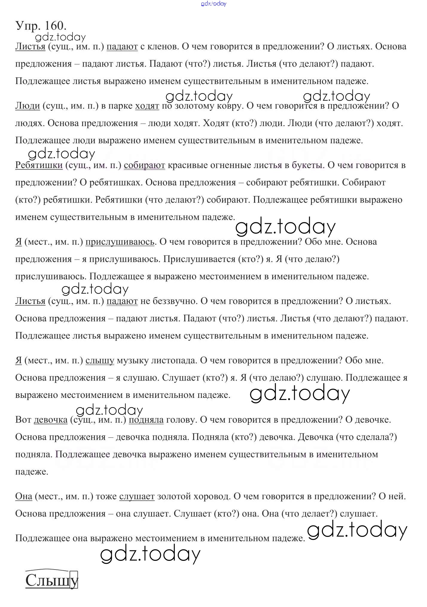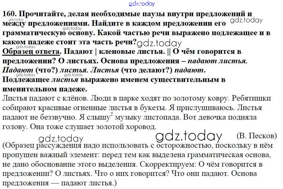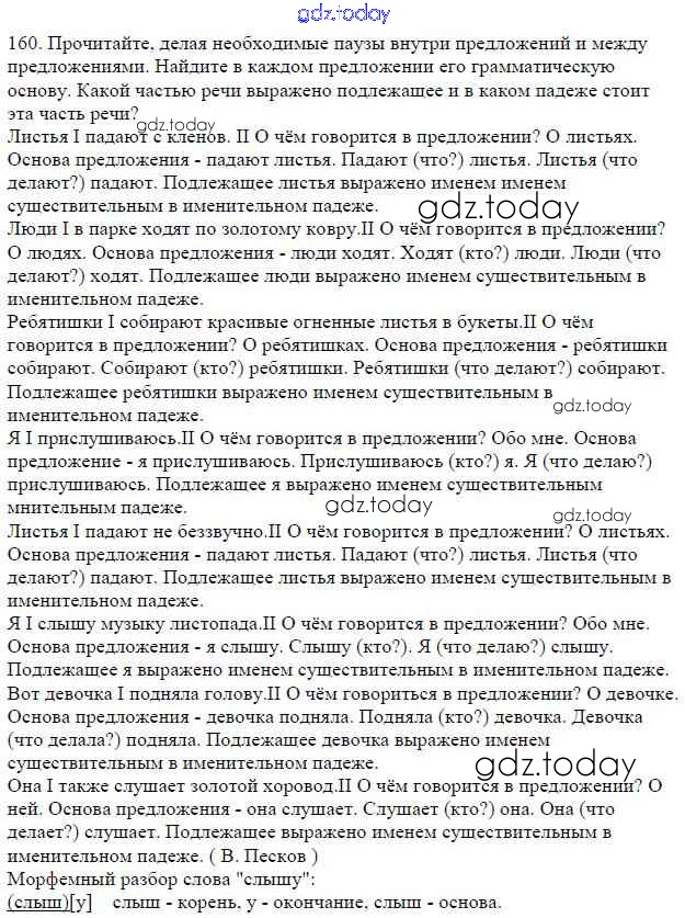 На страницах сайта gdz.today вы найдете учебный и вспомогательный материал, направленный на улучшения знаний школьной программы. ГДЗ - онлайн мир знаний Часть 1. Решение к упражнениям 160 Учебнику по Русскому языку для 5 класса Баранов, Ладыженская Просвещение, Просвещение 2016, 2019