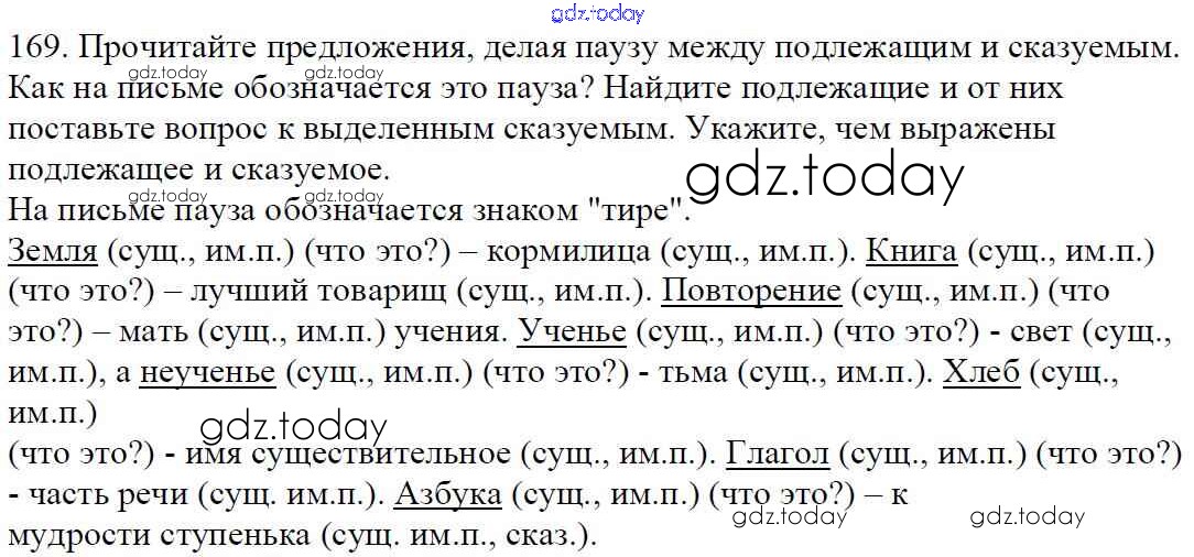 Ответы к Часть 1. Решение к упражнениям 169 Учебнику по Русскому языку для 5 класса Баранов, Ладыженская Просвещение, Просвещение 2016, 2019