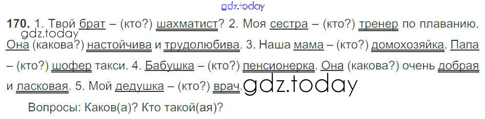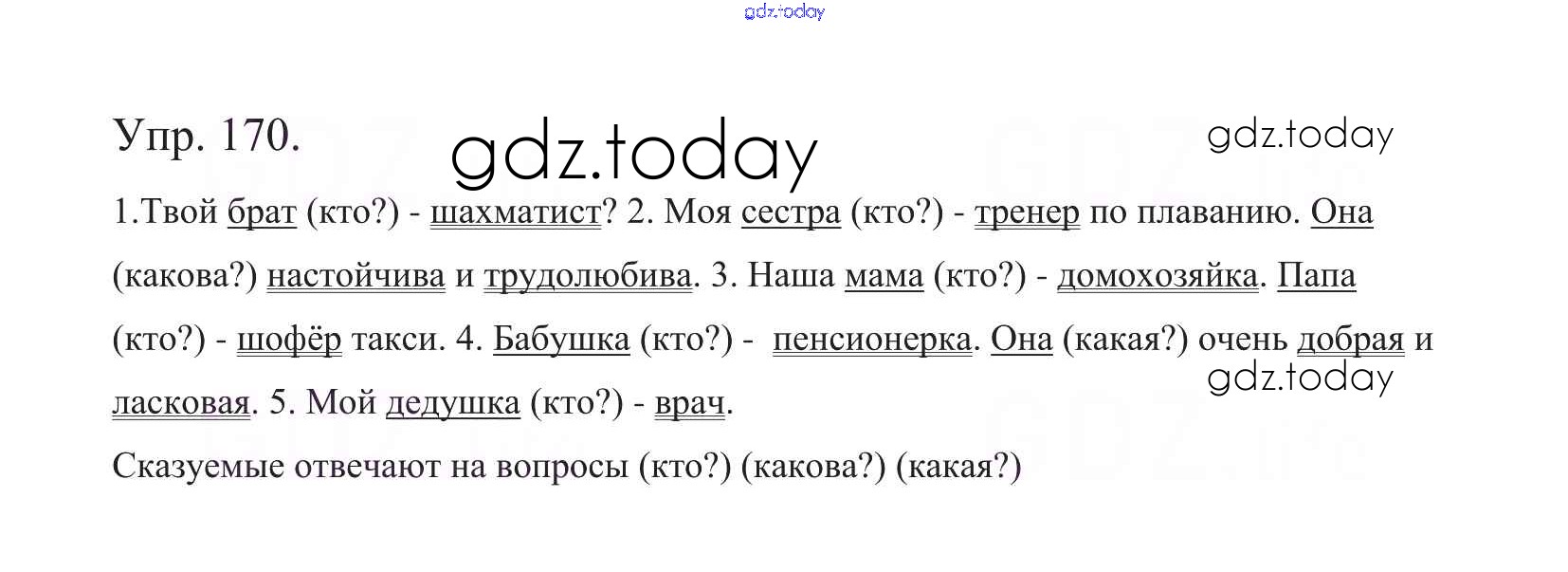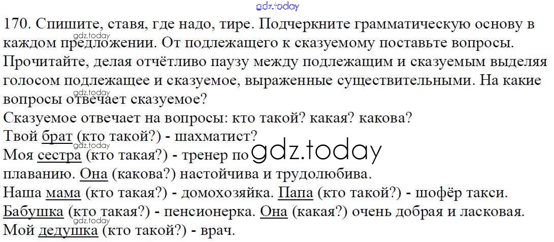 На страницах сайта gdz.today вы найдете учебный и вспомогательный материал, направленный на улучшения знаний школьной программы. ГДЗ - онлайн мир знаний Часть 1. Решение к упражнениям 170 Учебнику по Русскому языку для 5 класса Баранов, Ладыженская Просвещение, Просвещение 2016, 2019