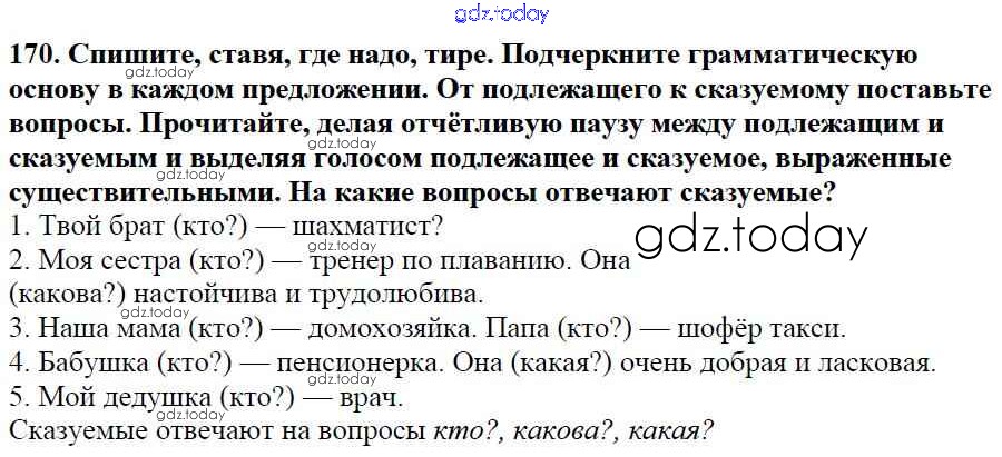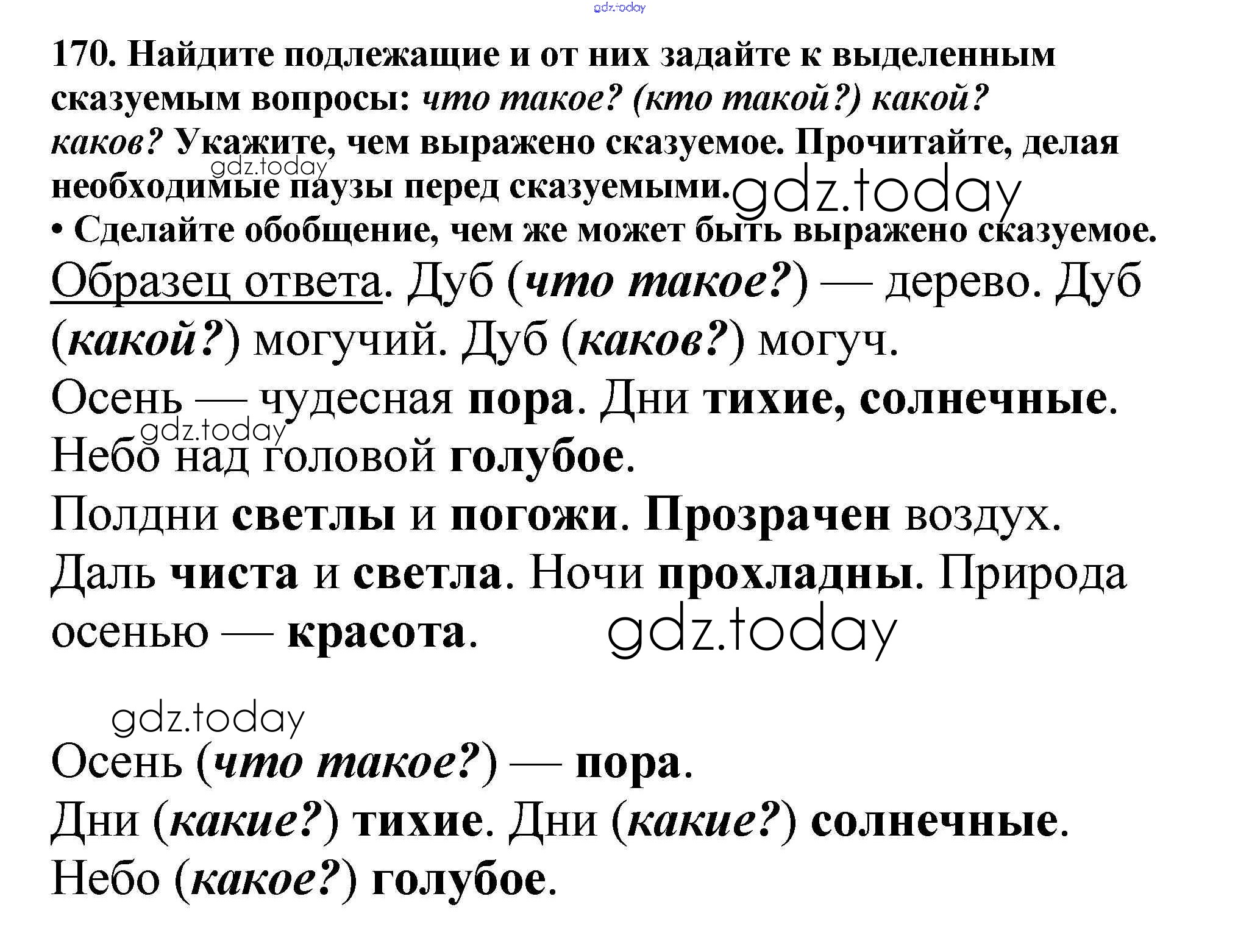 Ответы к Часть 1. Решение к упражнениям 170 Учебнику по Русскому языку для 5 класса Баранов, Ладыженская Просвещение, Просвещение 2016, 2019