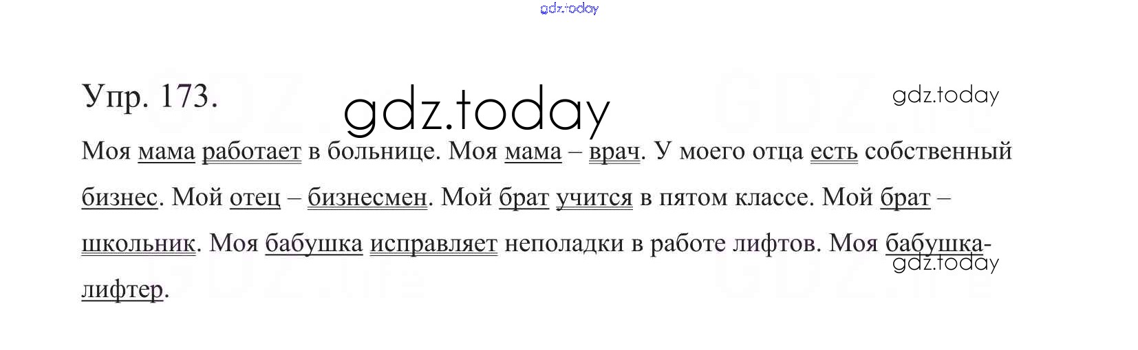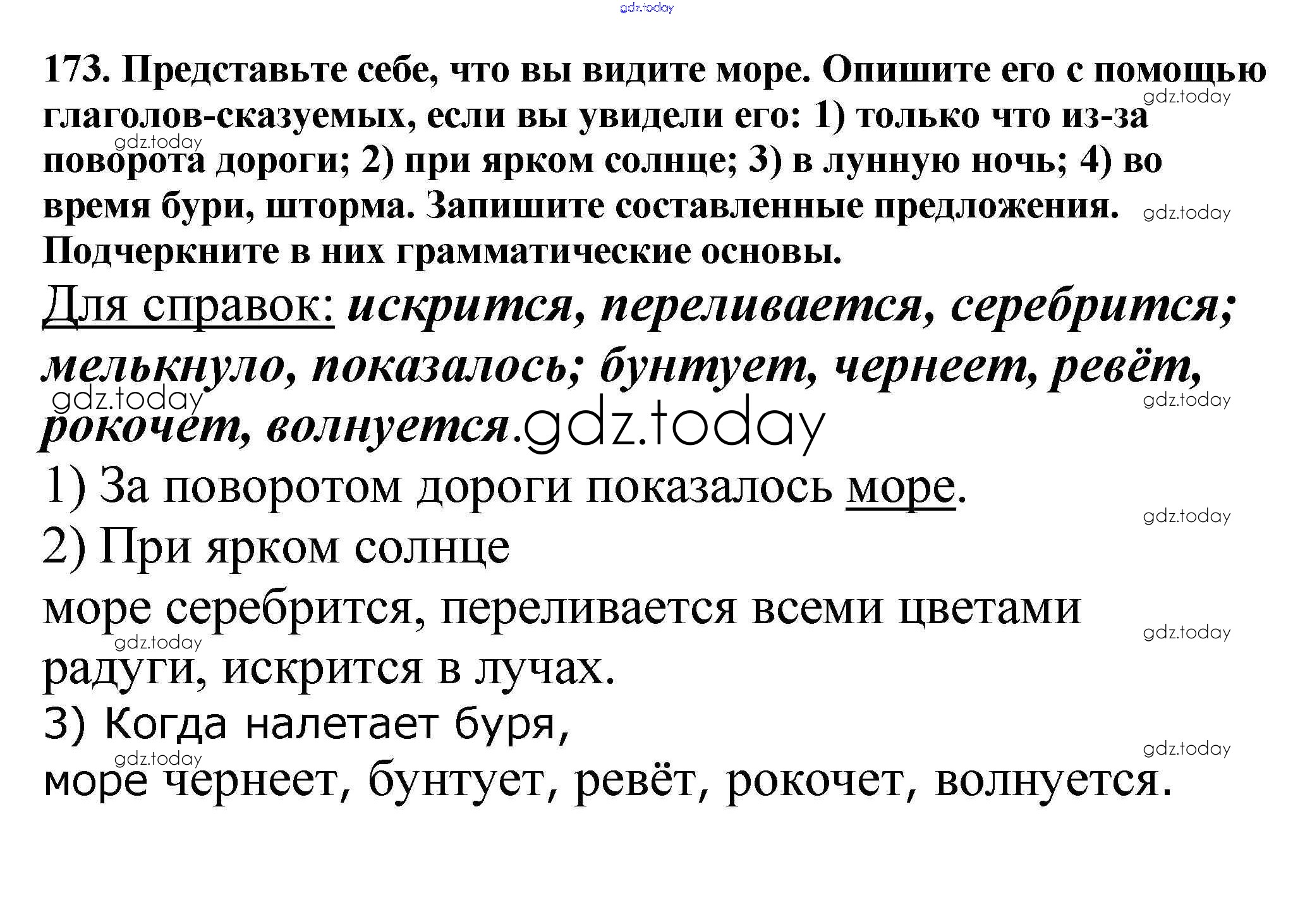 На страницах сайта gdz.today вы найдете учебный и вспомогательный материал, направленный на улучшения знаний школьной программы. ГДЗ - онлайн мир знаний Часть 1. Решение к упражнениям 173 Учебнику по Русскому языку для 5 класса Баранов, Ладыженская Просвещение, Просвещение 2016, 2019