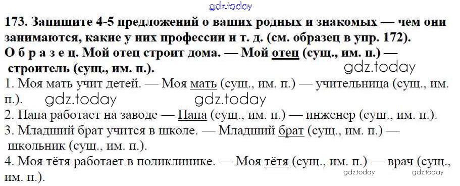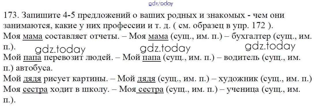 Ответы к Часть 1. Решение к упражнениям 173 Учебнику по Русскому языку для 5 класса Баранов, Ладыженская Просвещение, Просвещение 2016, 2019