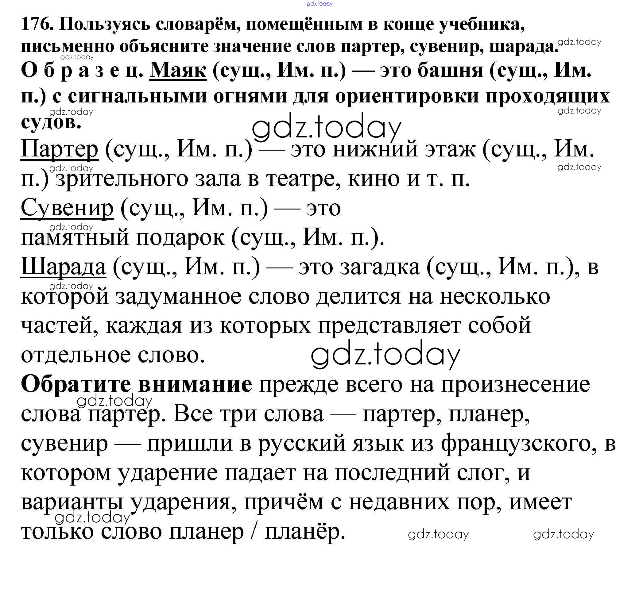 На страницах сайта gdz.today вы найдете учебный и вспомогательный материал, направленный на улучшения знаний школьной программы. ГДЗ - онлайн мир знаний Часть 1. Решение к упражнениям 176 Учебнику по Русскому языку для 5 класса Баранов, Ладыженская Просвещение, Просвещение 2016, 2019