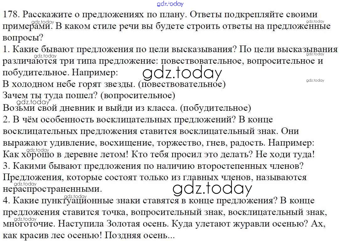 Ответы к Часть 1. Решение к упражнениям 178 Учебнику по Русскому языку для 5 класса Баранов, Ладыженская Просвещение, Просвещение 2016, 2019