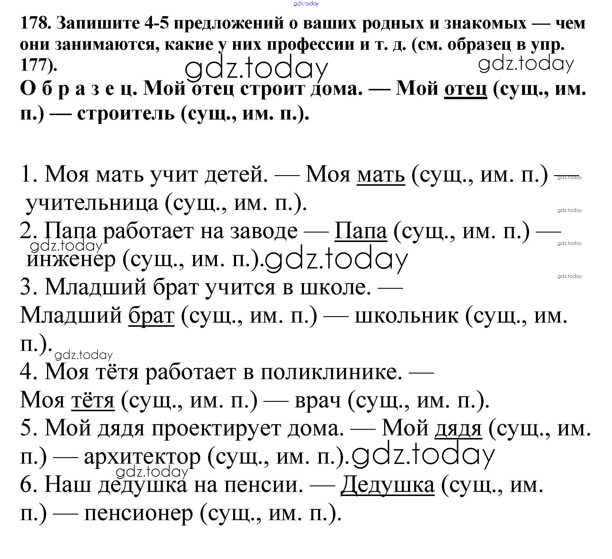 На страницах сайта gdz.today вы найдете учебный и вспомогательный материал, направленный на улучшения знаний школьной программы. ГДЗ - онлайн мир знаний Часть 1. Решение к упражнениям 178 Учебнику по Русскому языку для 5 класса Баранов, Ладыженская Просвещение, Просвещение 2016, 2019