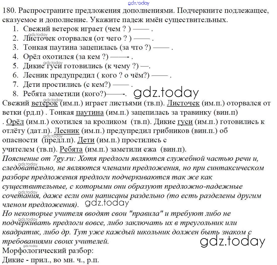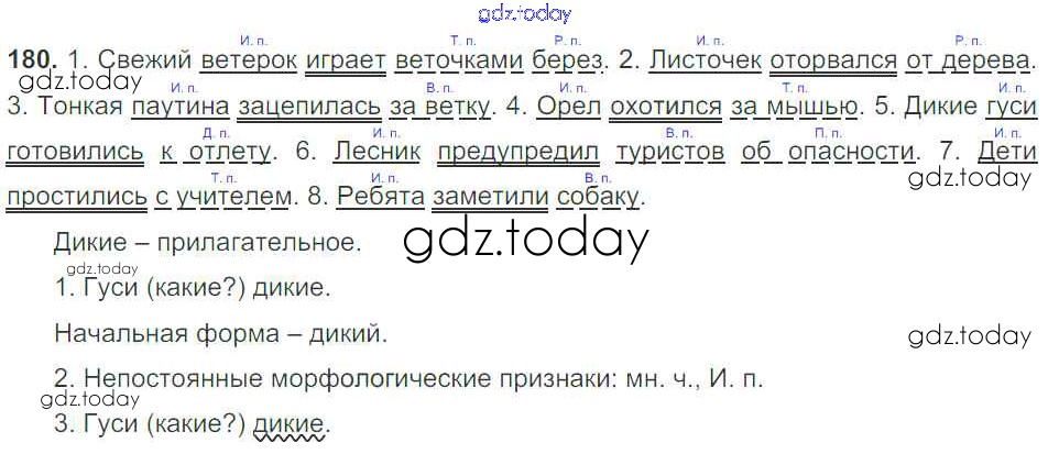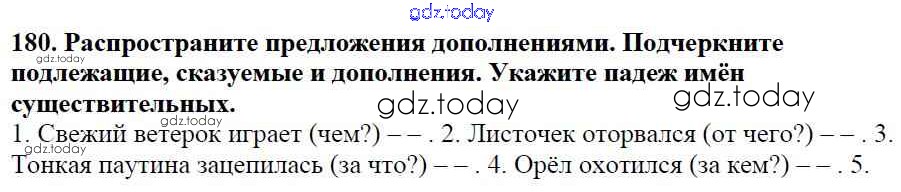 На страницах сайта gdz.today вы найдете учебный и вспомогательный материал, направленный на улучшения знаний школьной программы. ГДЗ - онлайн мир знаний Часть 1. Решение к упражнениям 180 Учебнику по Русскому языку для 5 класса Баранов, Ладыженская Просвещение, Просвещение 2016, 2019